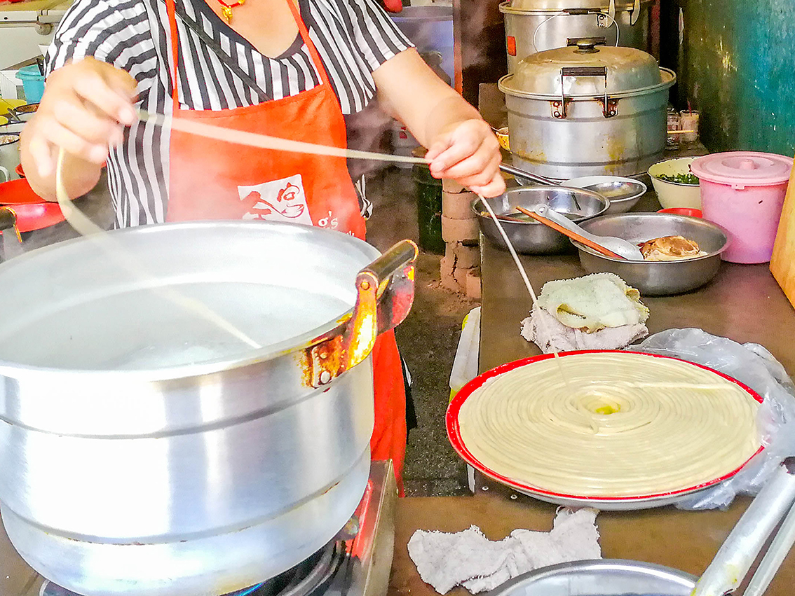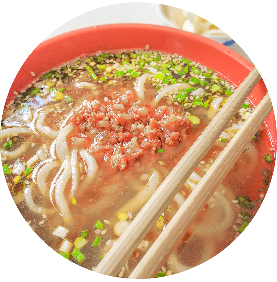 忽然,我们看见一家店卖“一根面”,便好奇走进去尝试。一看墙上的介绍,才知晓一根面又被称为扯扯面,需要经验丰富的手艺人的巧劲才能扯出一碗面来,恰好表现出了南方人的细腻。