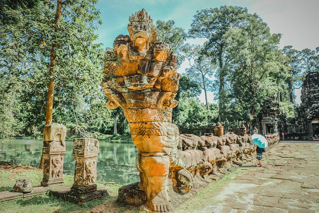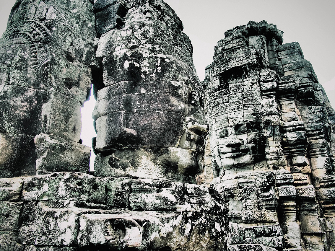 佛面塔之寺。同樣地,有很多遊客,但它絶對是一處不容錯過的景點。你可以從佛陀的略微各異的表情中感受到寧靜。這就是著名的“高棉的微笑”,每一座高塔都有四面佛,代表慈、悲、喜、舍。