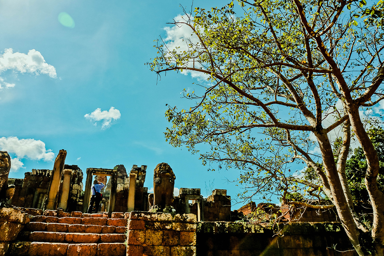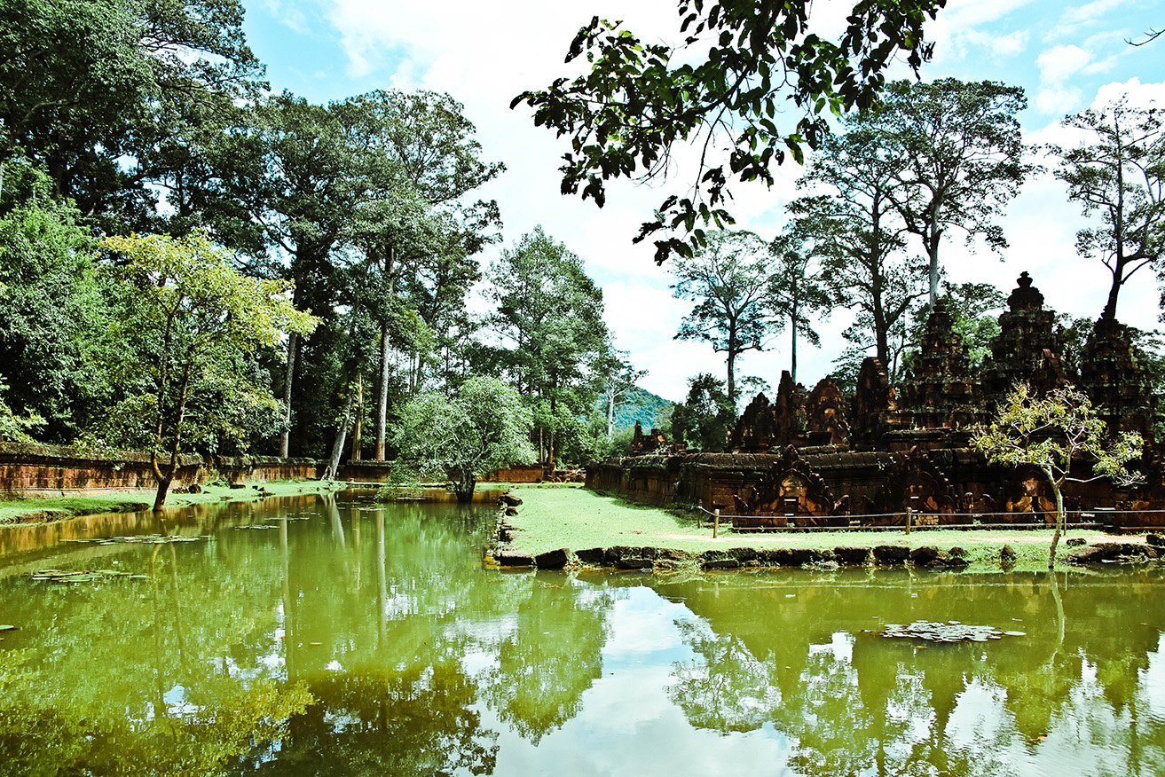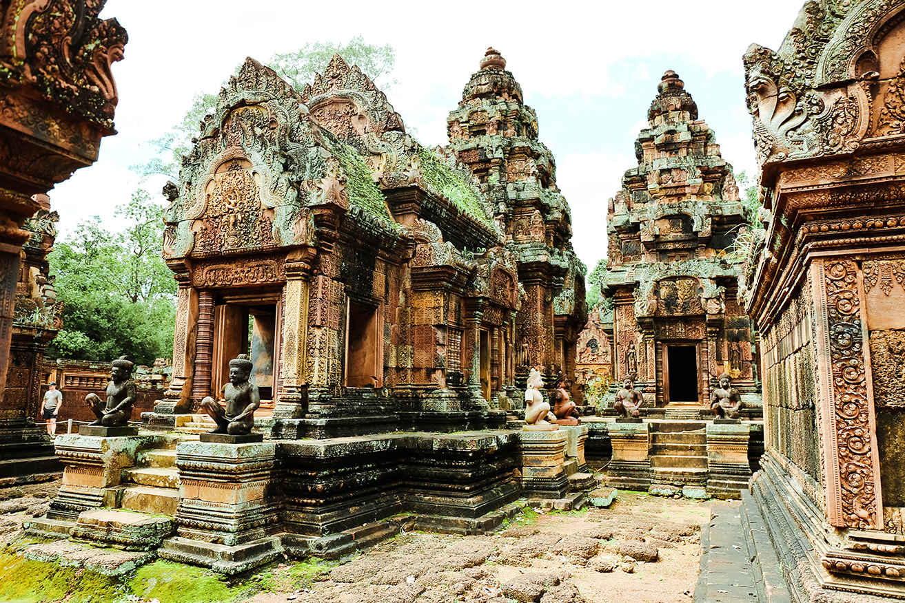 Banteay Srei班蒂丝蕾会被人误以为是君王收纳缤妃佳丽的后宫,如此柔美贵气的名称,却原来是高僧行经而过的廊道,而那寺塔则是他们引经据典的藏经阁。