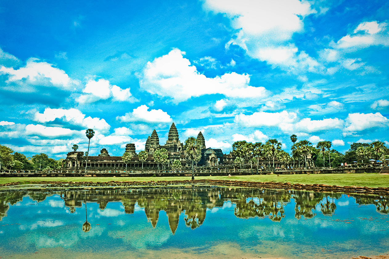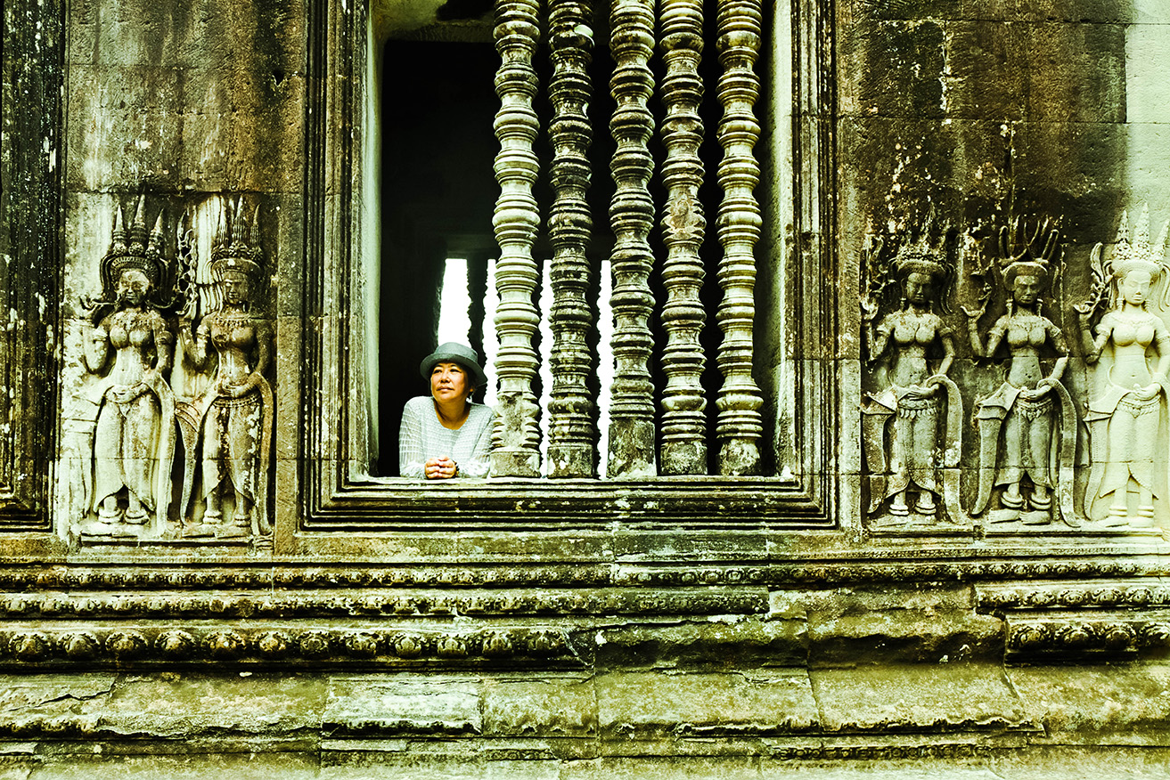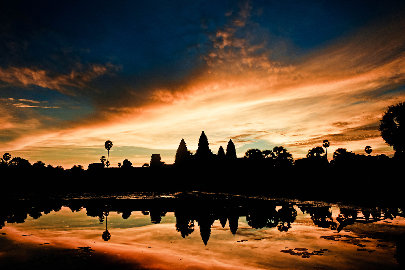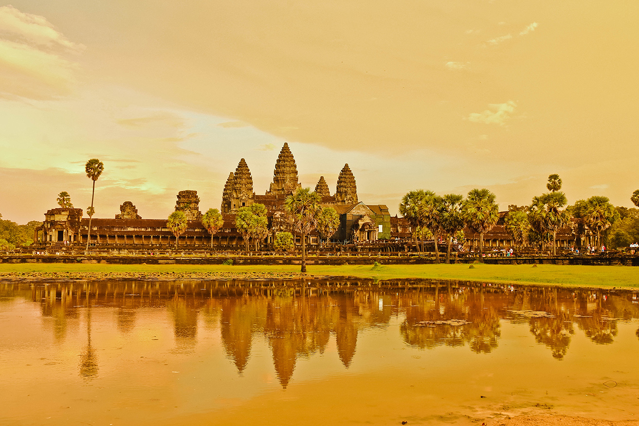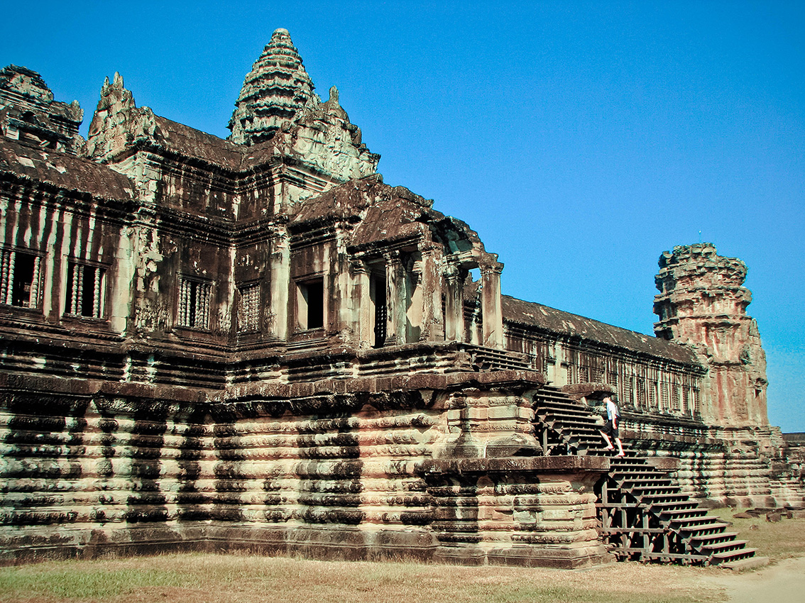 初看吴哥窟(又名吴哥寺或小吴哥,大吴哥为巴戎寺),五座莲花蓓蕾宝塔倒影在莲花池上,令我心灵一震,一种岁月不朽的温柔扑面而来,份外感动。