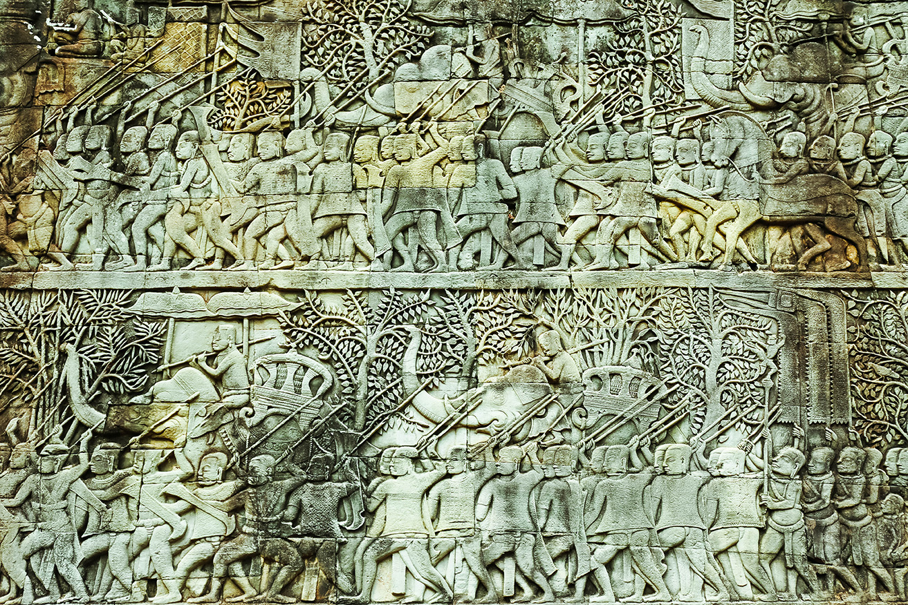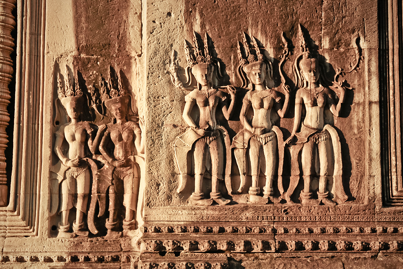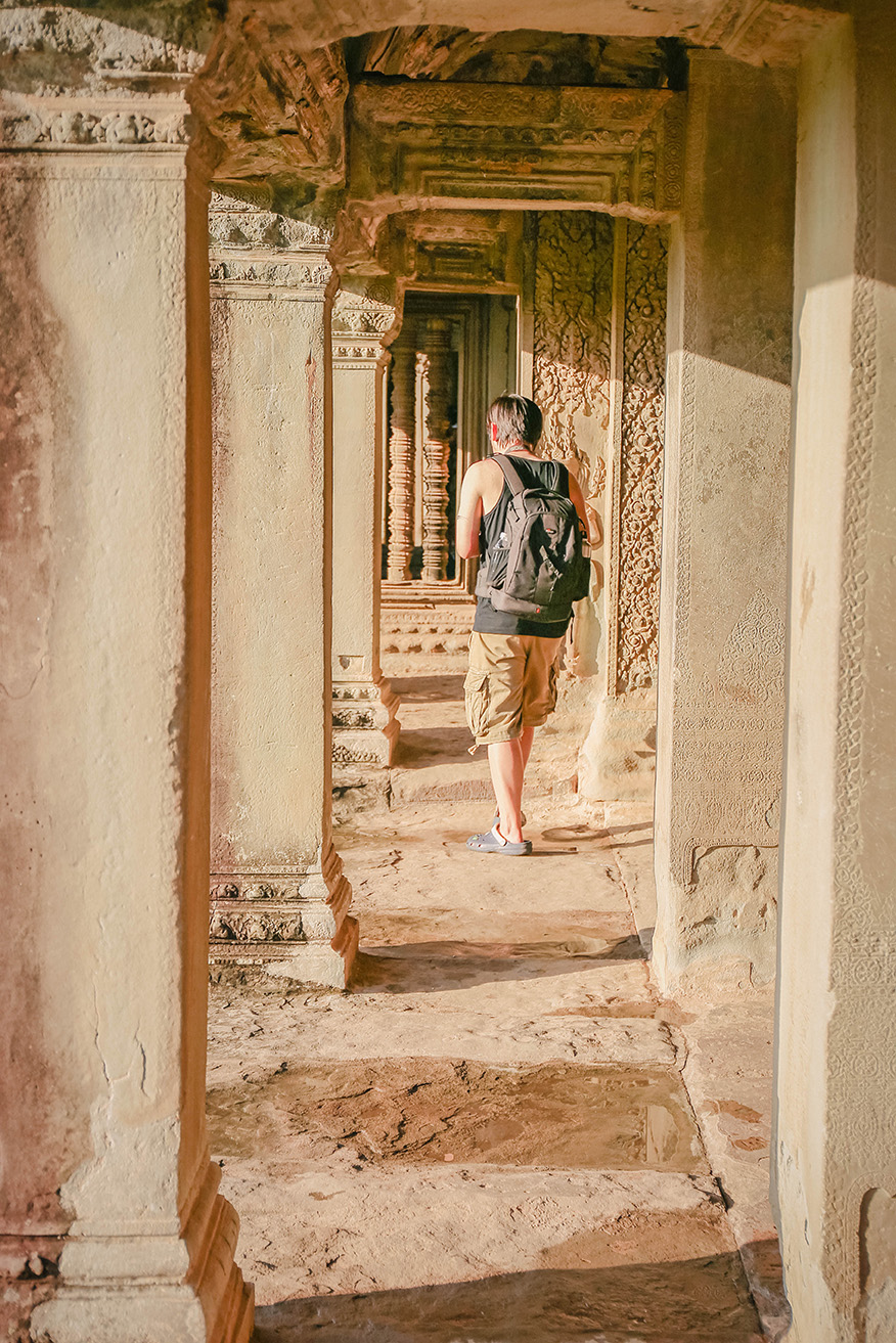 在吴哥窟看到的各种细节也是很惊人的。墙上满是精细复杂的雕刻,描绘着各种历史事件和神话。当我站在庙堂的中间,抬头望着砂岩石板时,我开始想像30万工人和6000头大象,带着这些石头穿过山脉与河流,真的让人叹为观止。