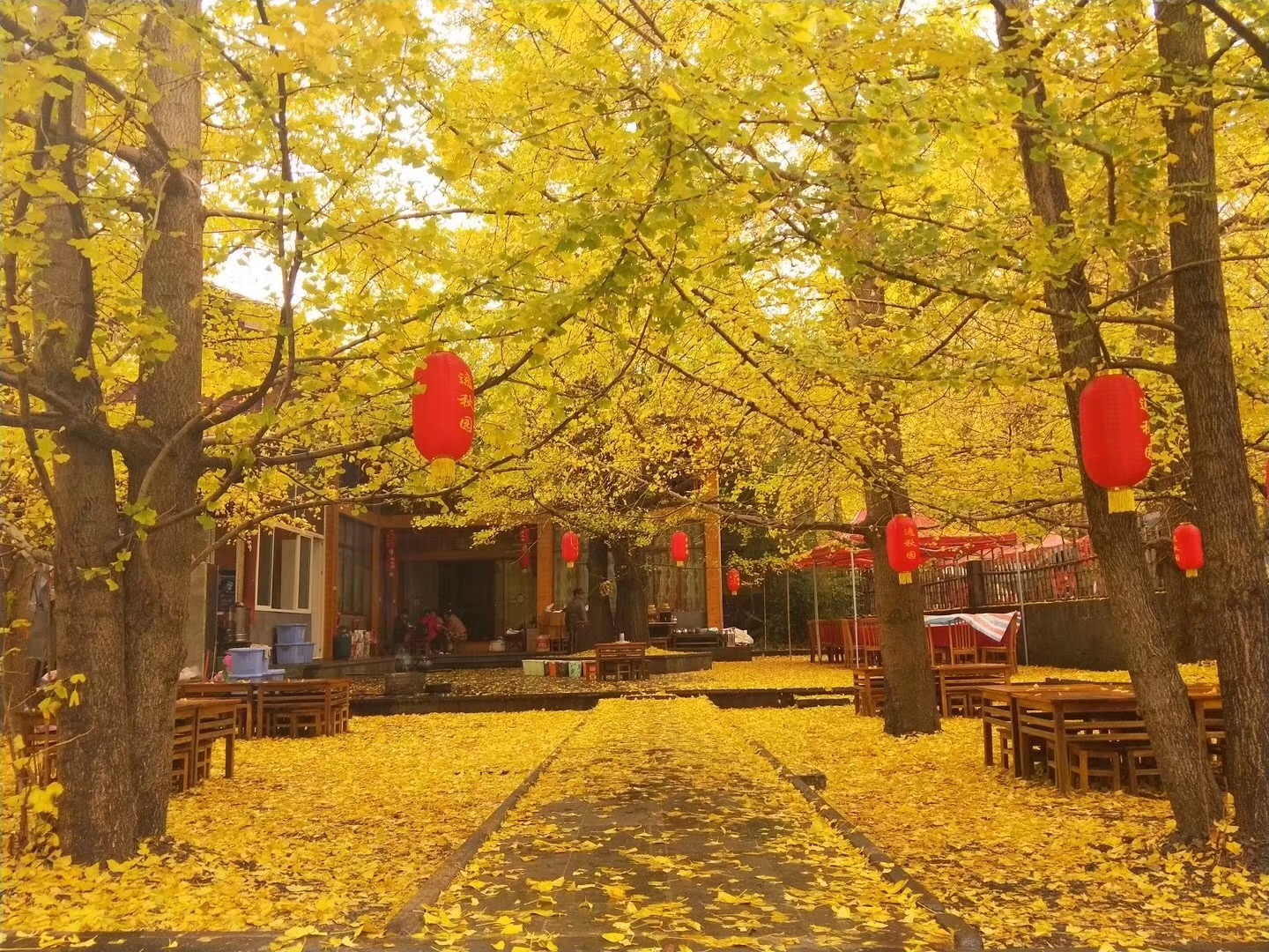 房前屋后的银杏格外的耀眼,