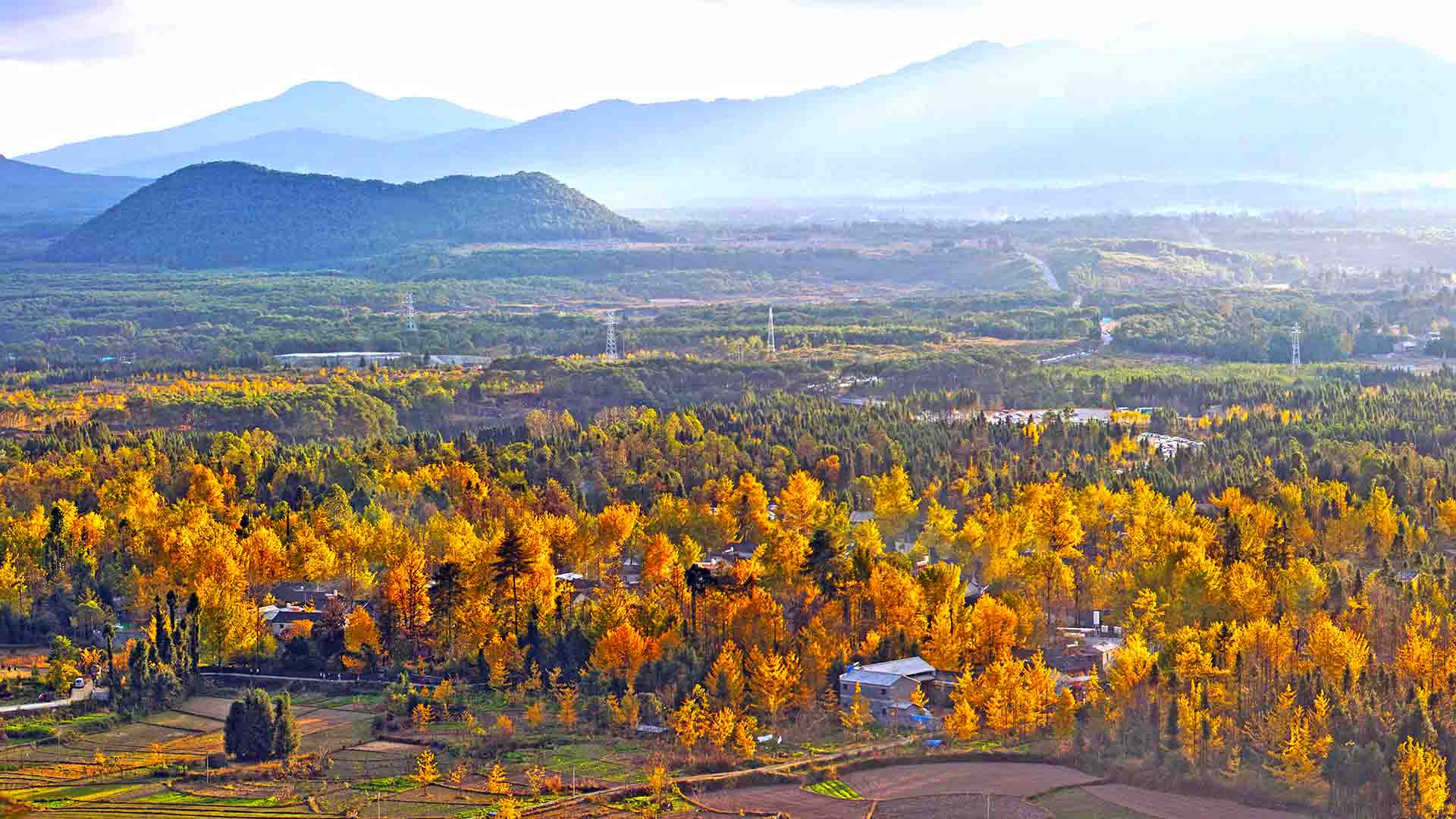 金黄的银杏将整个村庄衬托得淋漓尽致,