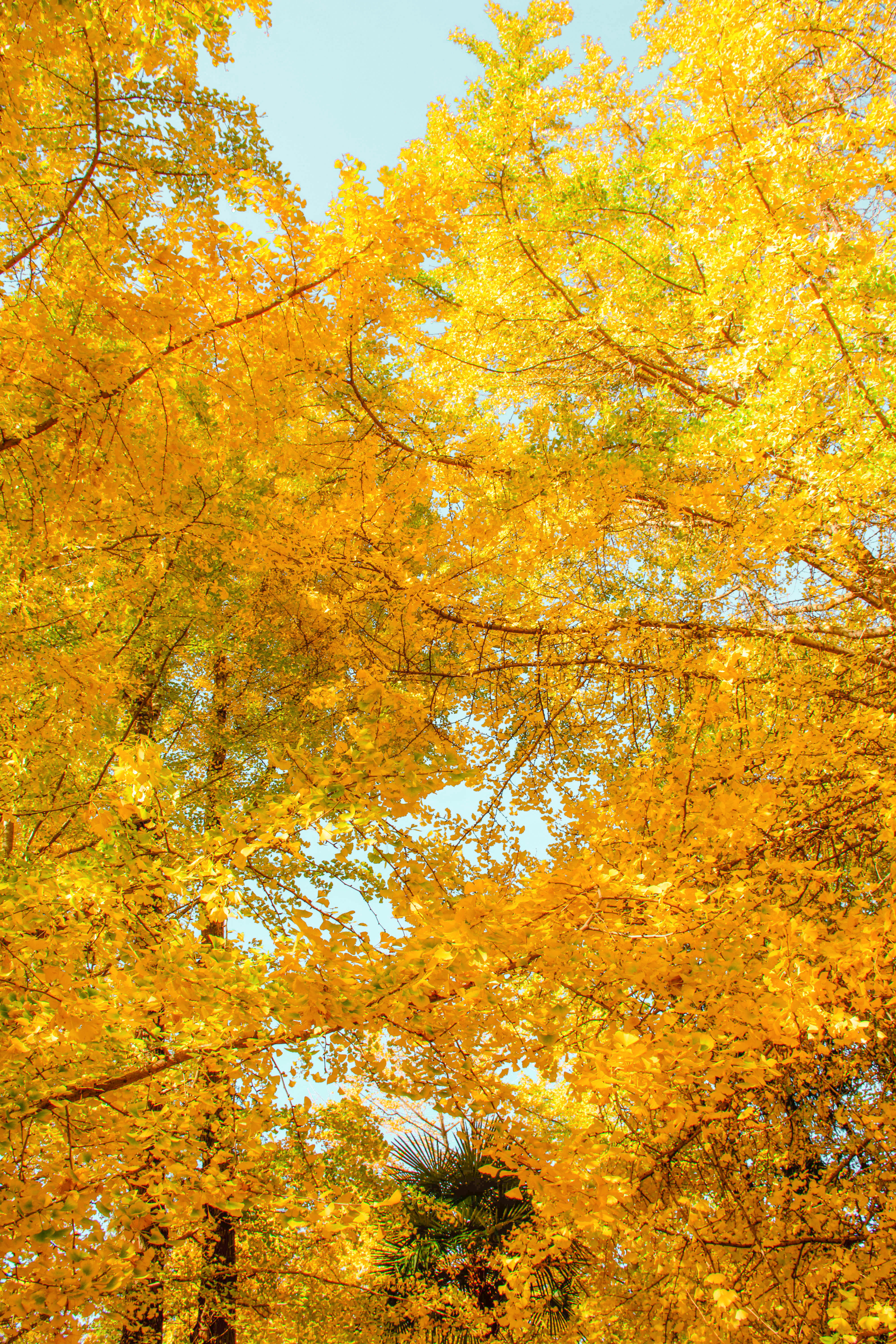金黄色的银杏叶便会洋洋洒洒地飘落在你的身上。