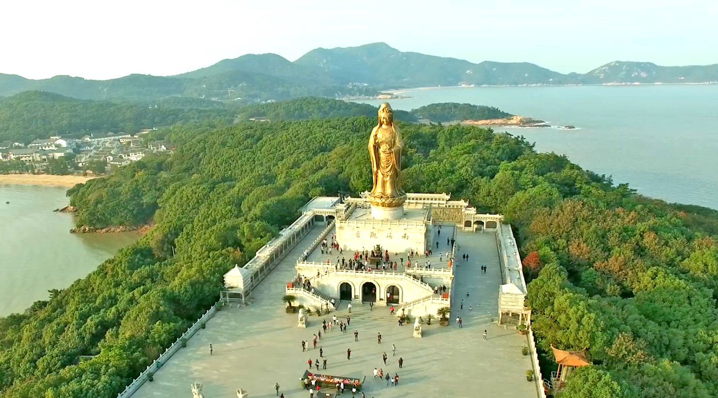 ◆ 高20多米的“南海观音”巨像,慈目凝视大海,使普陀山锦上添花,“海天佛国”名副其实。
