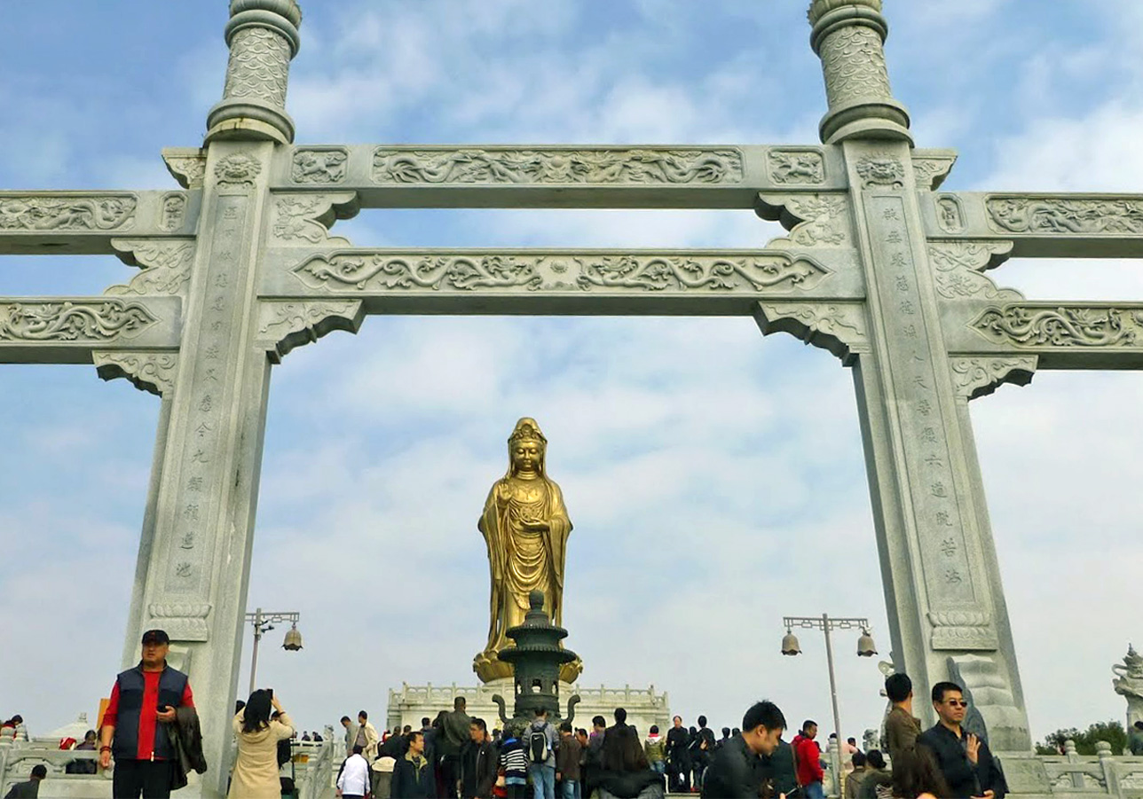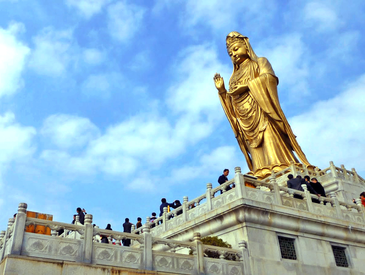 ◆ 妙相慈祥的「面海观音」立像,是普陀山的耀目标志。