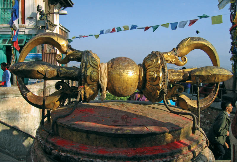 ◆ 加德满都市内处处可见与宗教有关的事物,此为密宗佛器之一。