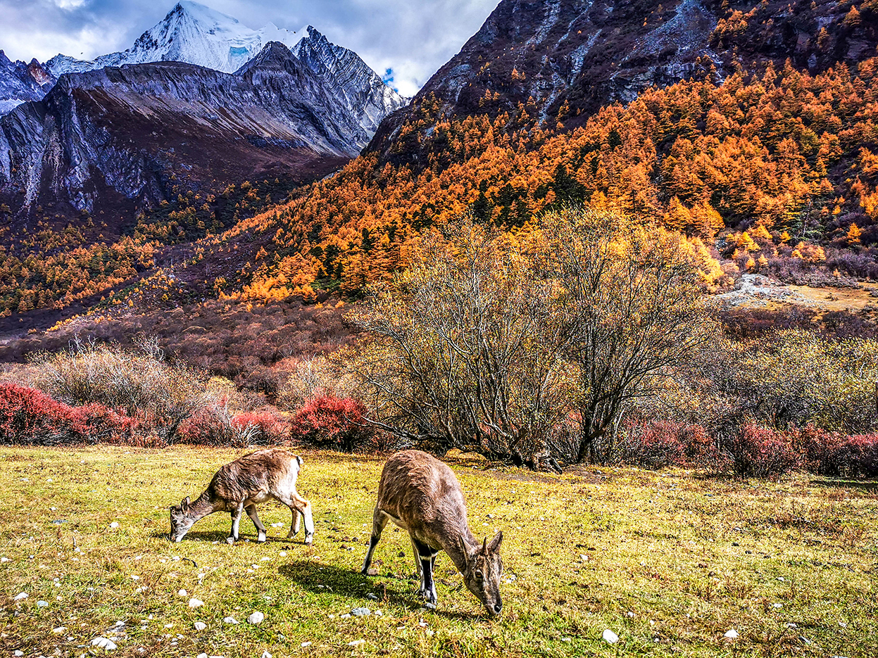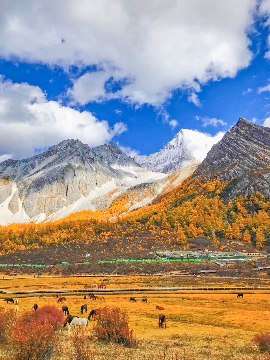 总有人说,秋天带着萧瑟,带着无言的悲伤,可秋日里也有一番独特的宁静,而稻城亚丁的秋日,更是有世间最热闹的色彩。