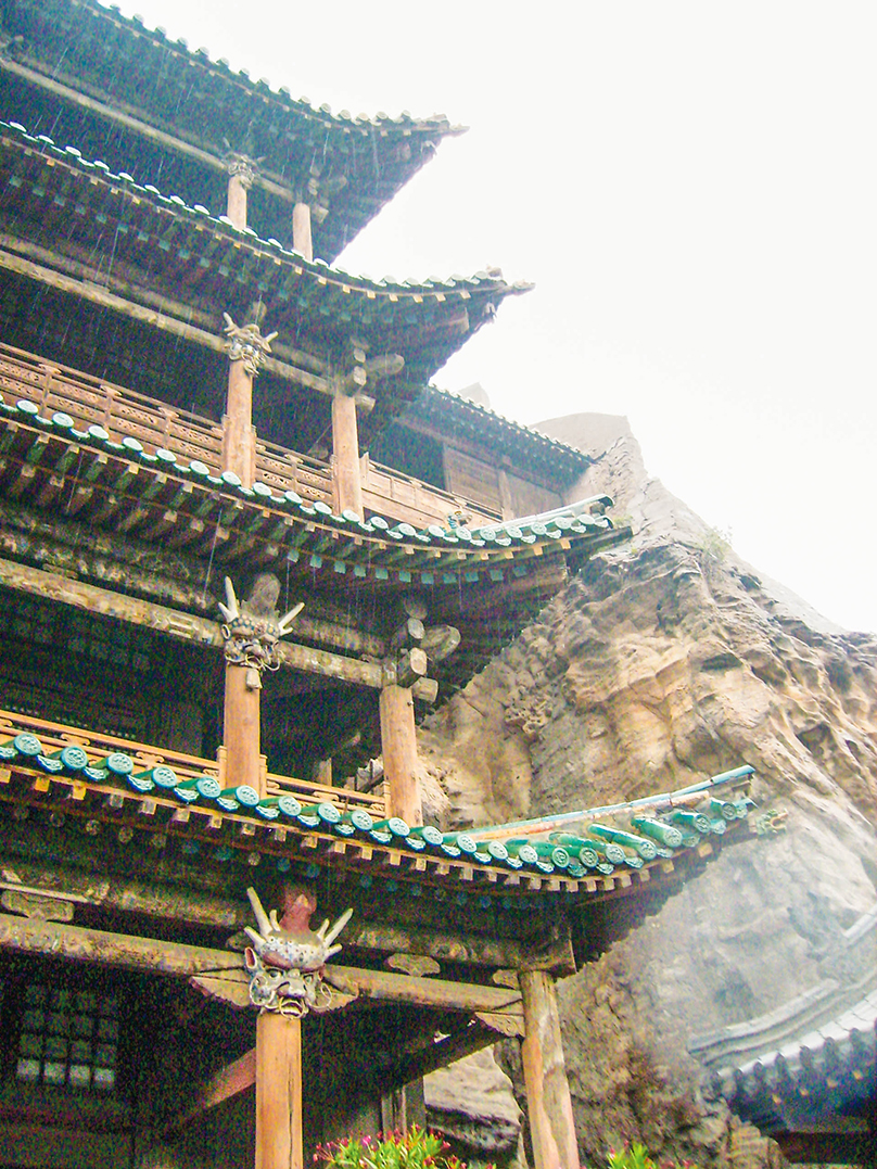 依山体修建起来的云冈第5窟重檐楼阁一瞥。