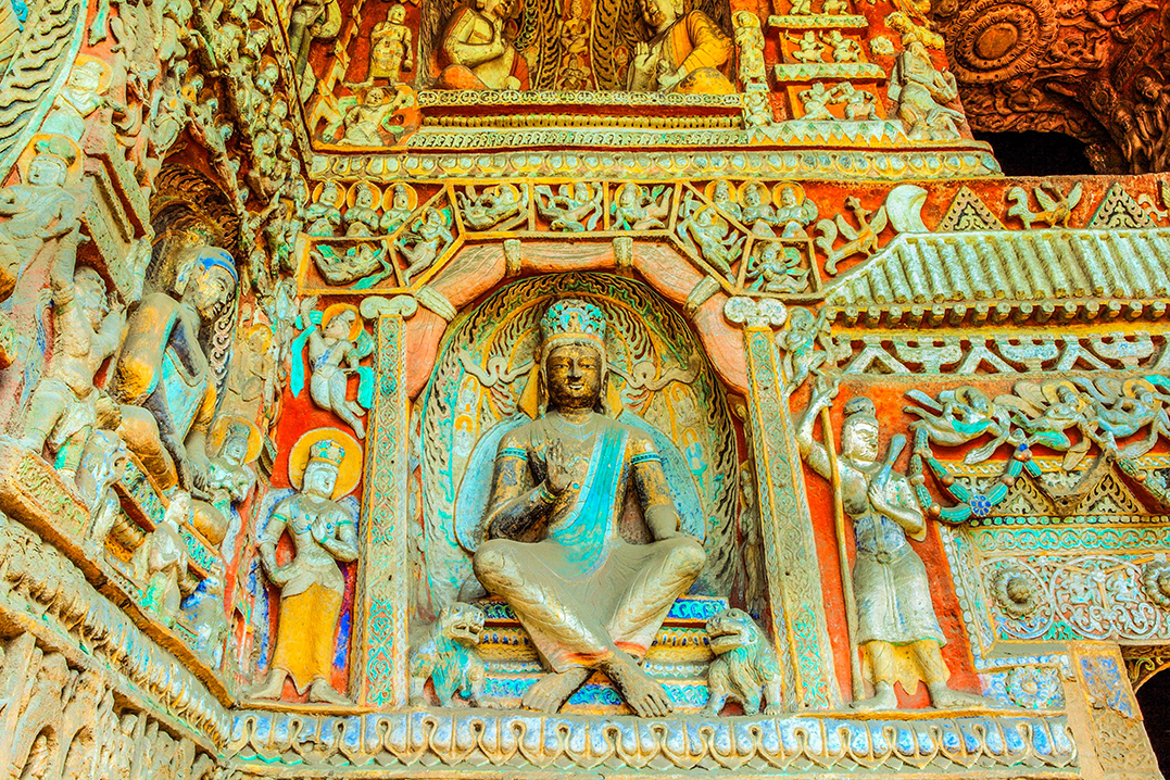 佛母窟中心塔柱的精致雕饰。