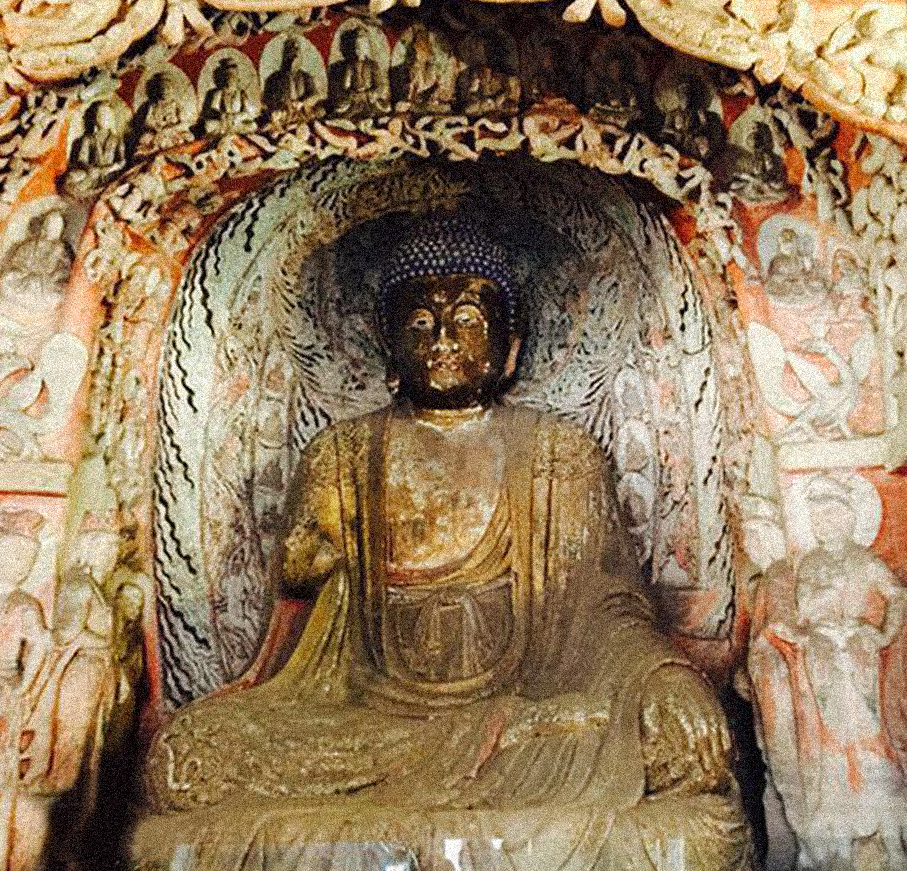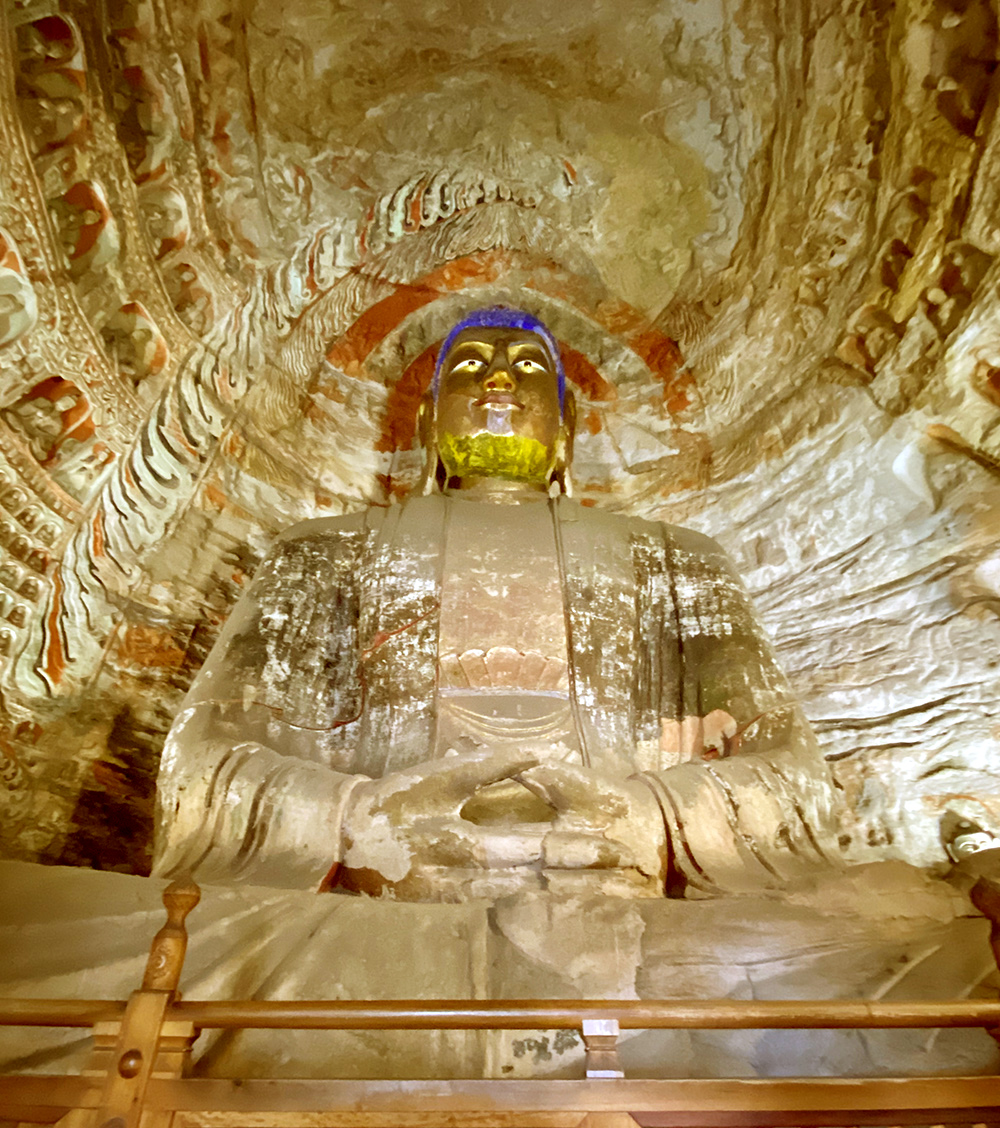大佛窟后室北壁的大佛,佛身经清代妆銮,惟背后的项光是北魏的原刻。