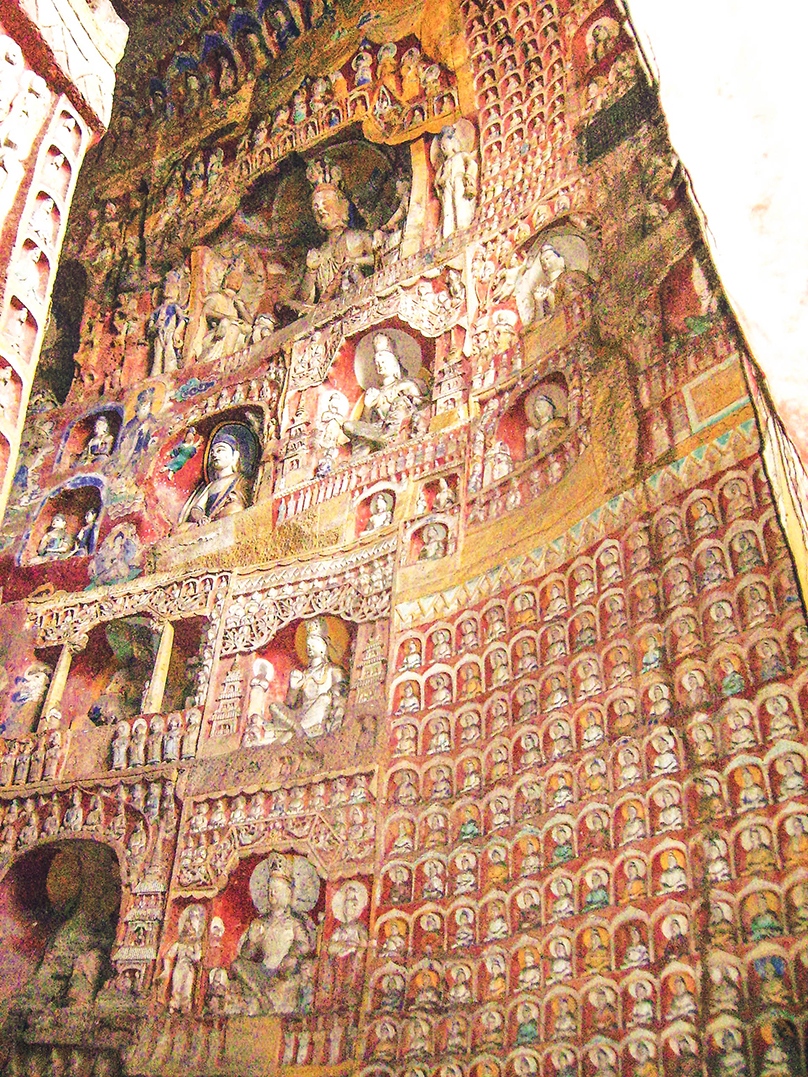 云冈的千佛窟里,一边是保留相对完整的岩雕,一边是面向风口而大肆风化的岩壁,对比之下,让人顿生无常之叹。
