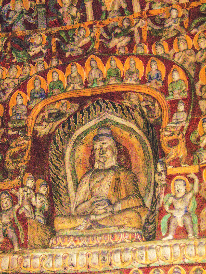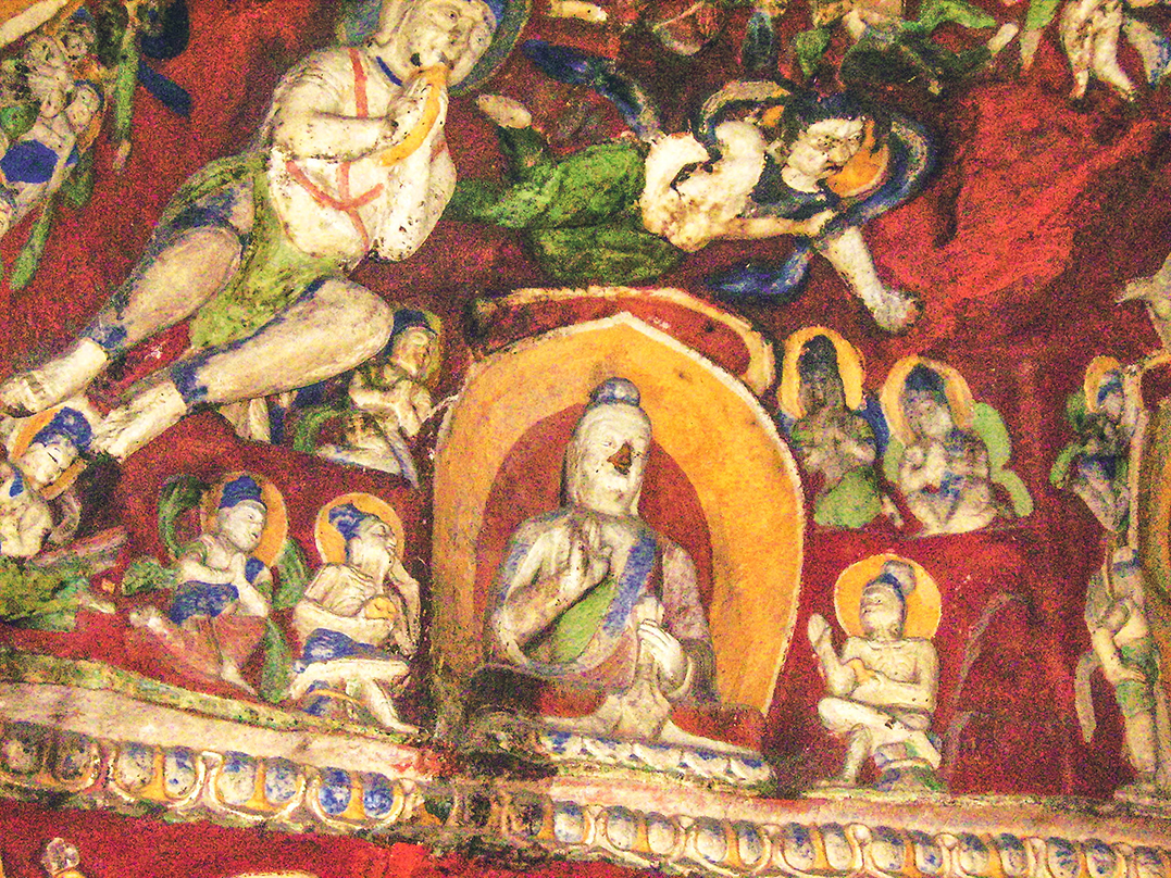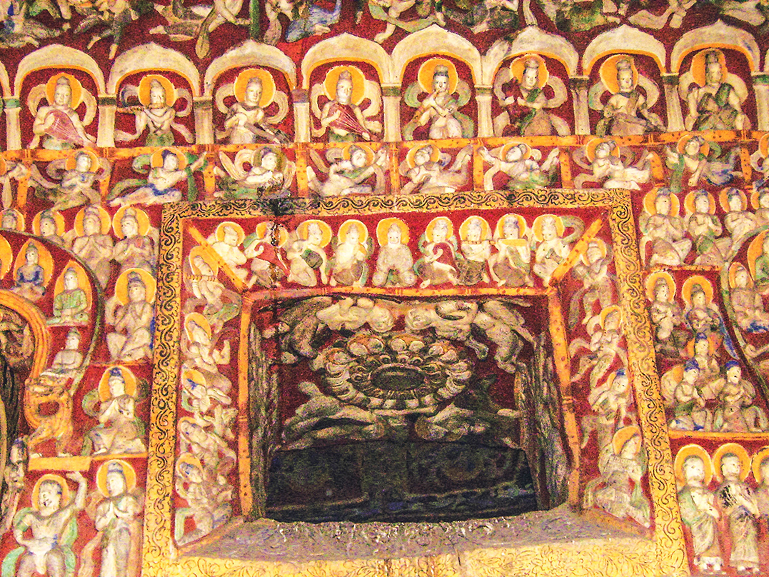 伎乐天凌空飞舞的第12窟前室藻井的明窗。
