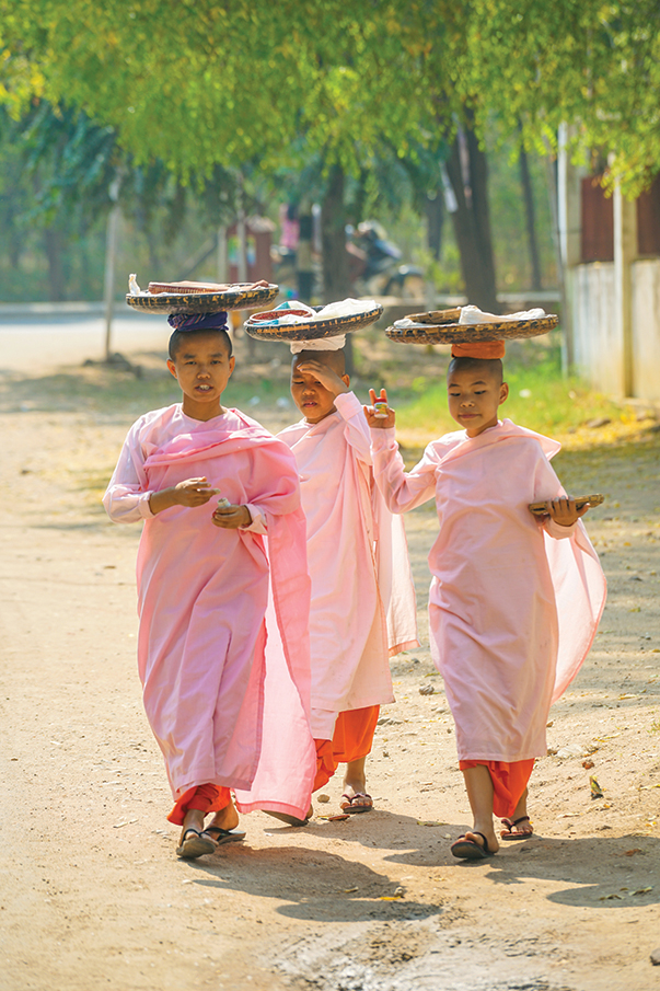 湛蓝的晴空下,在寺院里游走,最美的庙宇、最雄伟的佛塔、最奇观的浮雕、再大的佛像都看遍了,可是,当你见到缅甸人对于佛法的虔诚,一一在他们脸上的微笑中,化为朵朵莲花散发开来,那种纯净美善的光辉,此时,你会明了:法,原来不在于外求,只要你相信,它会融会贯通,自然而然的从内心里流露出来!
