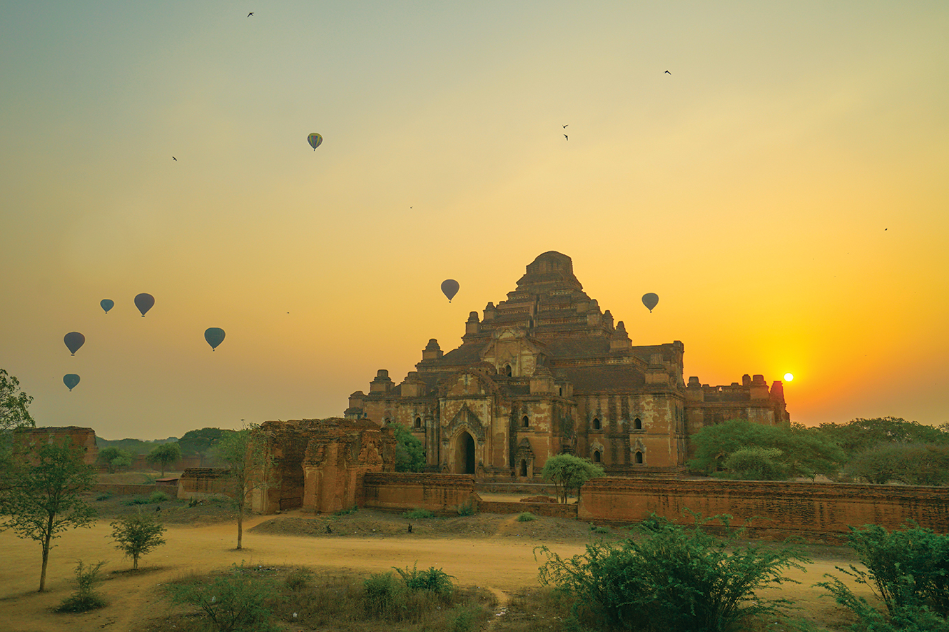 比起吴哥窟,蒲甘无疑是比较粗糙的,可是那日出的壮阔,一座座的古塔剪影在柔和泛黄的光影中若隐若现,热气球冉冉而升的这一幕,却还是无与伦比的震撼。