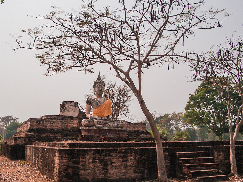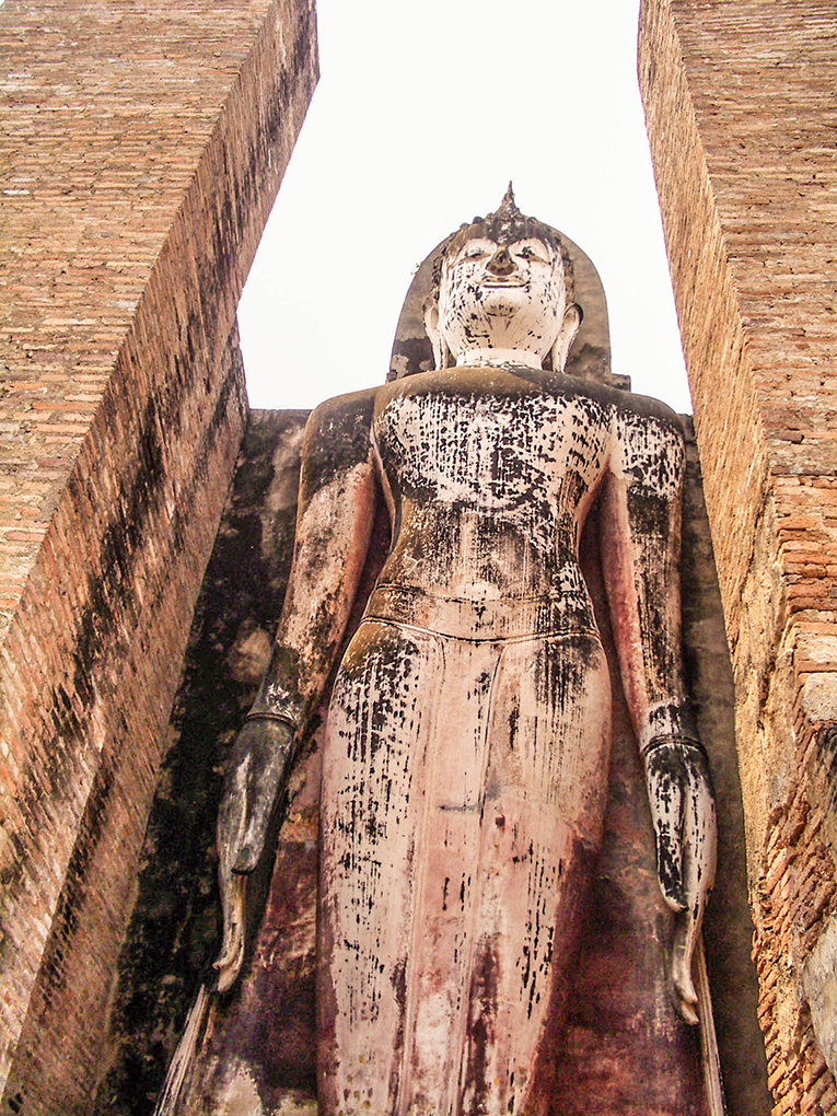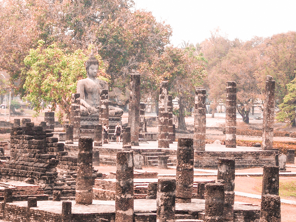 素可泰分为古城和新城,所谓古城即“素可泰遗址公园”,偌大的公园里满是断璧残垣的佛寺遗址,及各种或残缺或完整的佛像。