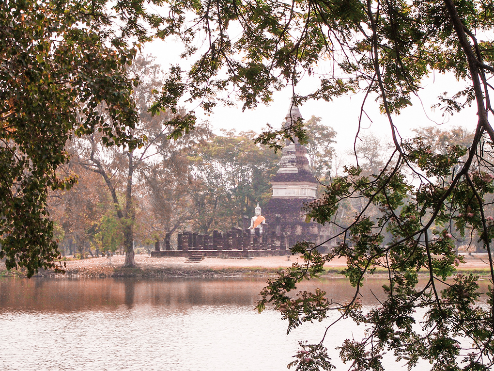 沙斯寺(Wat Sa Si)寺庙则修建在一个小岛之上,是典型的素可泰风格寺庙,其中有一尊美丽的大佛。