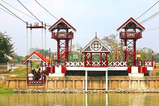 这座全世界独一无二的精彩寺庙就是皇家寺院——尼维塔玛帕万寺(Wat Niwet Thammaprawat),坐落在一个独立的小岛上,只要坐缆车不到一分钟就能抵达河对岸。