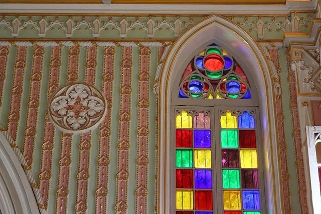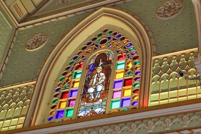 所以尼维塔玛帕万寺以西方教堂为蓝本,建筑整体呈现哥特式艺术风格,融入了凡尔赛宫的设计,有着哥德式尖形的拱门和欧式的花窗玻璃,单从外形上来看确实很像教堂,但其实它是佛寺。