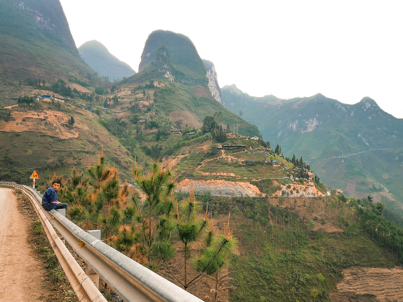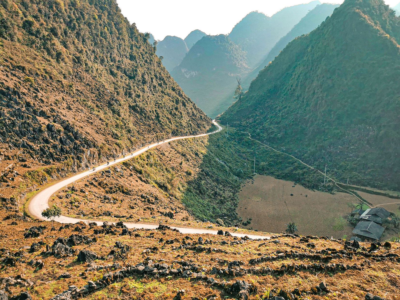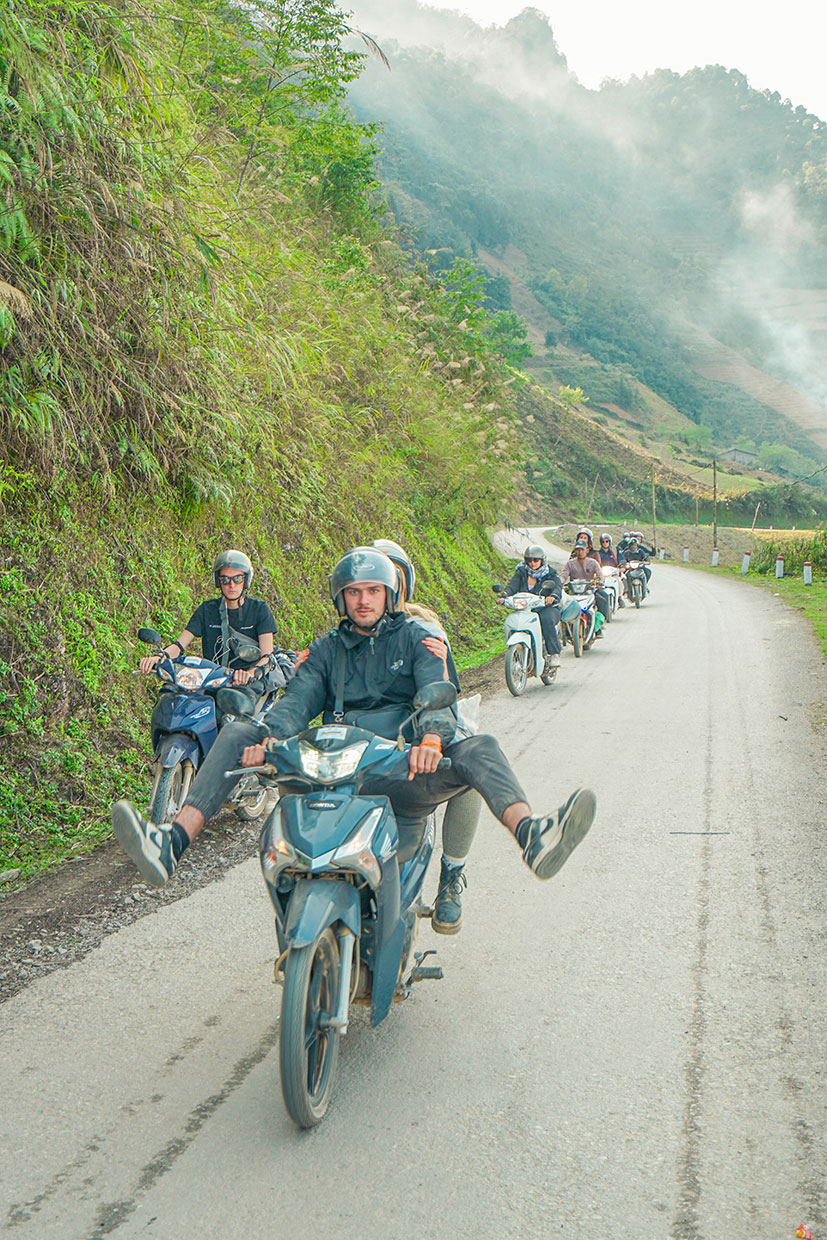 骑摩托车真的是体验河江的最佳方式。狭小的山区路无法停车,尽管有时会有卡车经过大声按喇叭,但也增添了惊险刺激的感觉。从种满绿意的山谷转入峡谷地带,小径穿过蜿蜒的溪流旁的草屋和竹林,陪伴我们疾驰。有时候还会遇到许多归程的摩托车游客,大家会友好地互相打招呼,在他们满意的笑容中,已经给了这次行程打了高分!这4天3夜的行程确实给我们带来了无尽的乐趣,只是每天坐着至少七八个小时摩托车,屁股开始疼了,真是痛并快乐着。