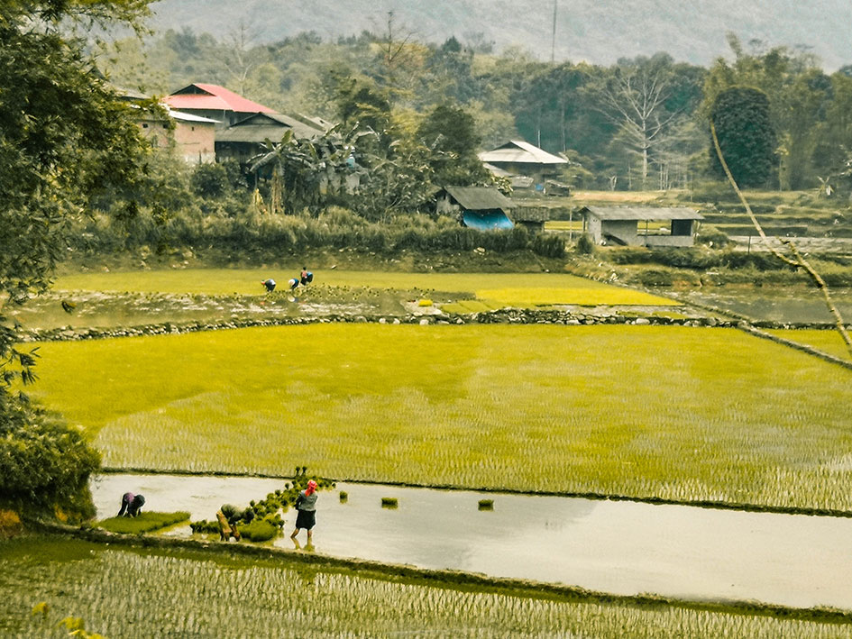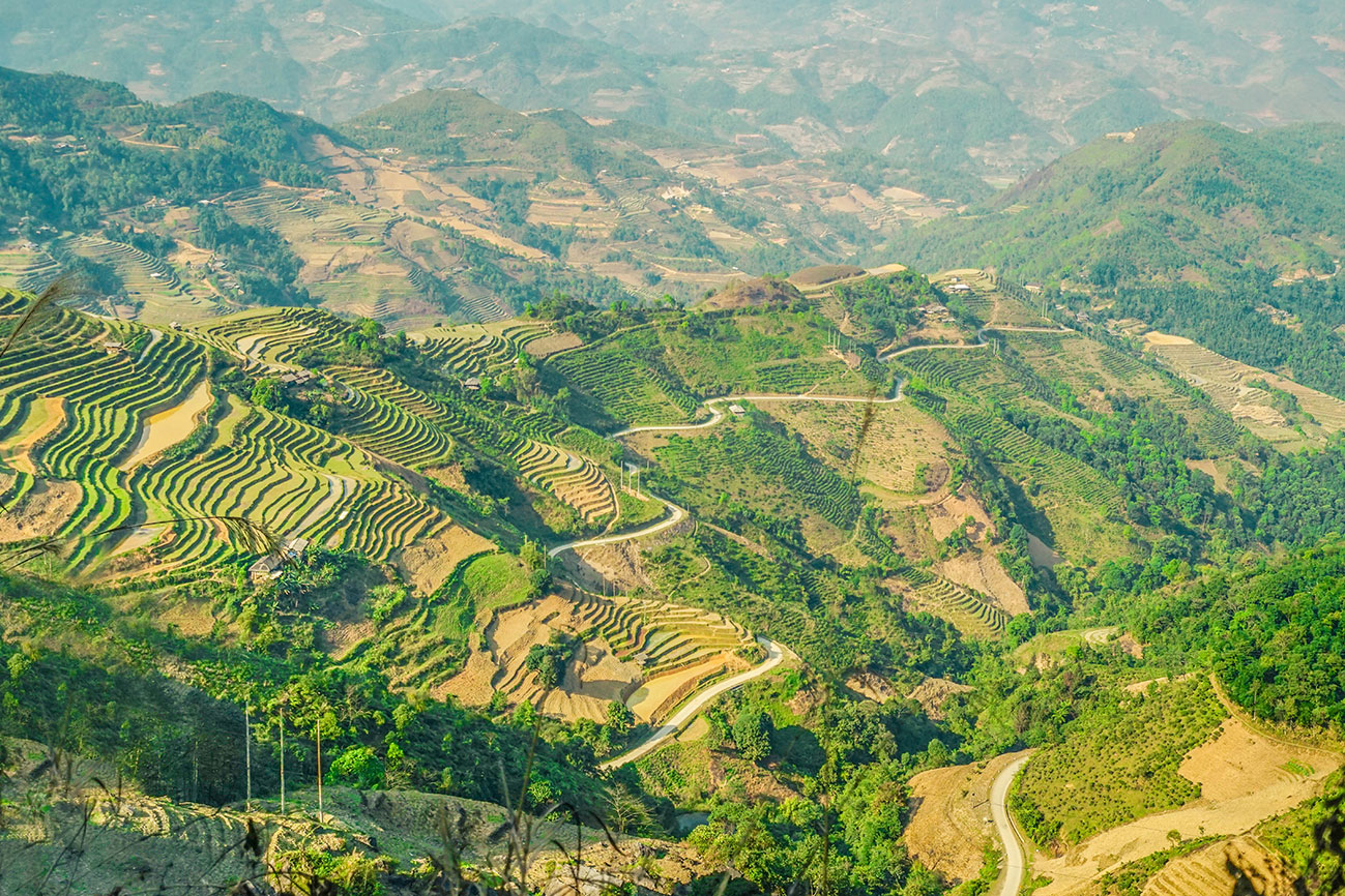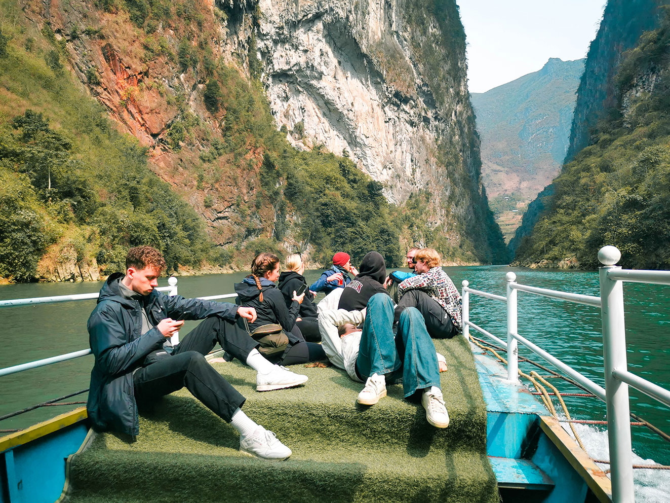 骑摩托车真的是体验河江的最佳方式。狭小的山区路无法停车,尽管有时会有卡车经过大声按喇叭,但也增添了惊险刺激的感觉。从种满绿意的山谷转入峡谷地带,小径穿过蜿蜒的溪流旁的草屋和竹林,陪伴我们疾驰。有时候还会遇到许多归程的摩托车游客,大家会友好地互相打招呼,在他们满意的笑容中,已经给了这次行程打了高分!这4天3夜的行程确实给我们带来了无尽的乐趣,只是每天坐着至少七八个小时摩托车,屁股开始疼了,真是痛并快乐着。