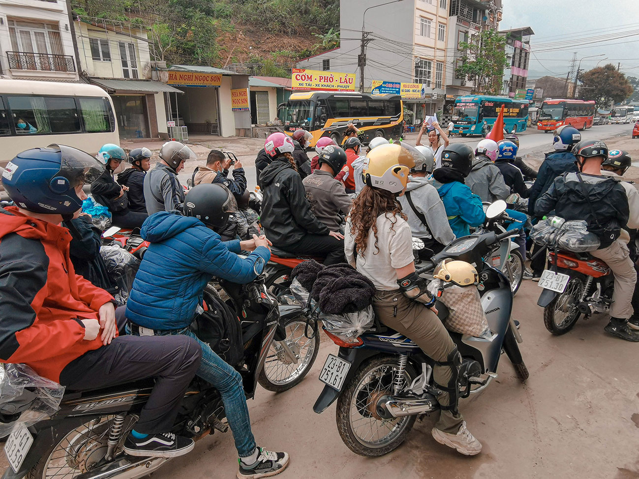 这次旅程真是丰富多彩!我们穿越了4个县城:官坝(Quản Bạ)、安铭(Yên Minh)、同文(Dong Van)和苗旺(Mèo Vạc),还有约20个小村落和景点。这其中包括世界遗产的钟乳石洞、越南和中国边境的龙铜旗塔,以及同文喀斯特高原的自然风光和梯田,还有令人心跳的天空之门。这些景点为我们这些摩托冒险者带来了无尽的乐趣和刺激!