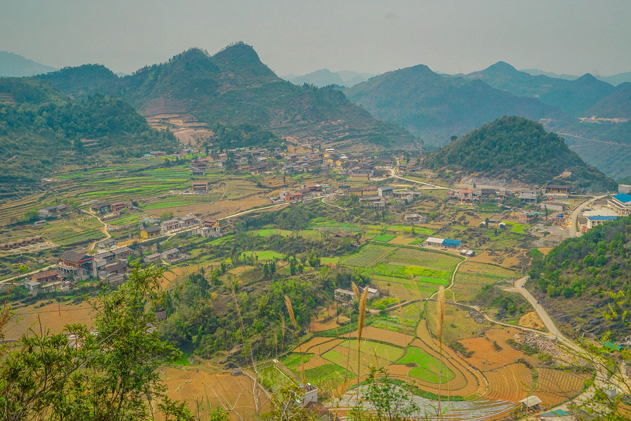 连绵的山峦、梯田,眼前展现的是开阔的田园景色。