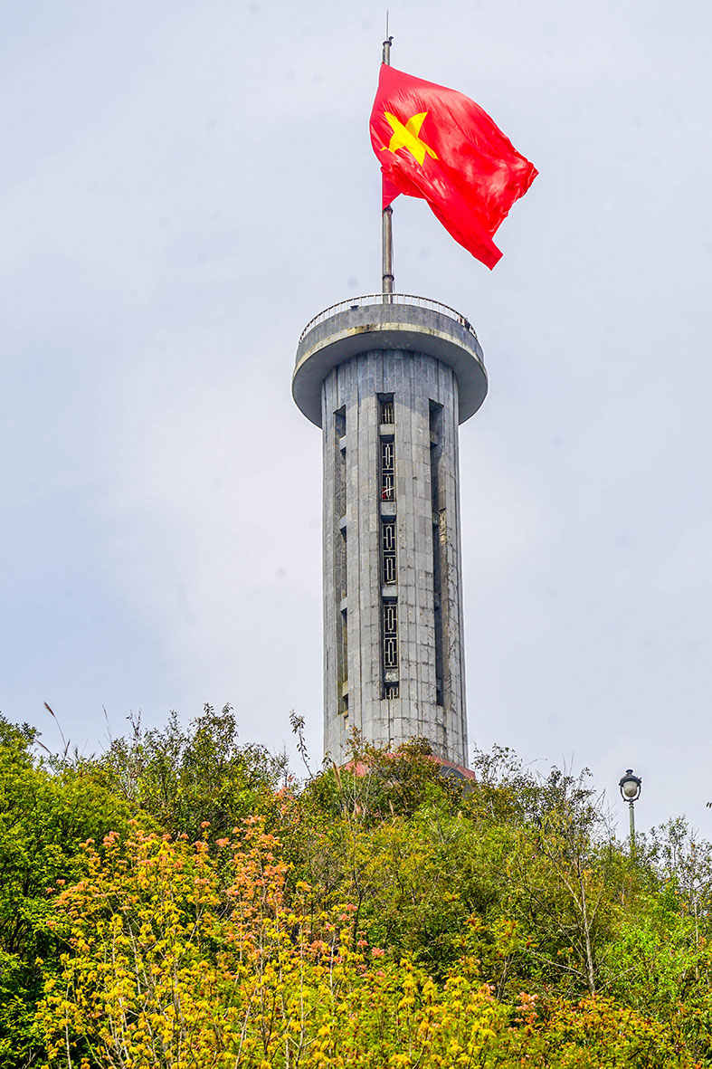 在河江省同文县龙鼓乡海拔一千七百米的龙山顶上,一面越南国旗迎风飘扬。