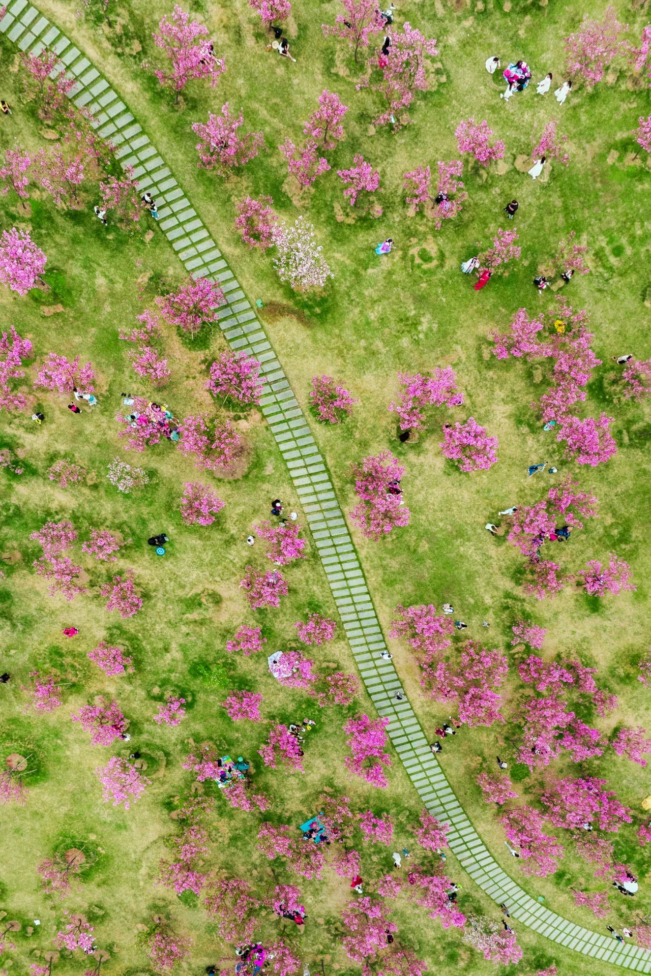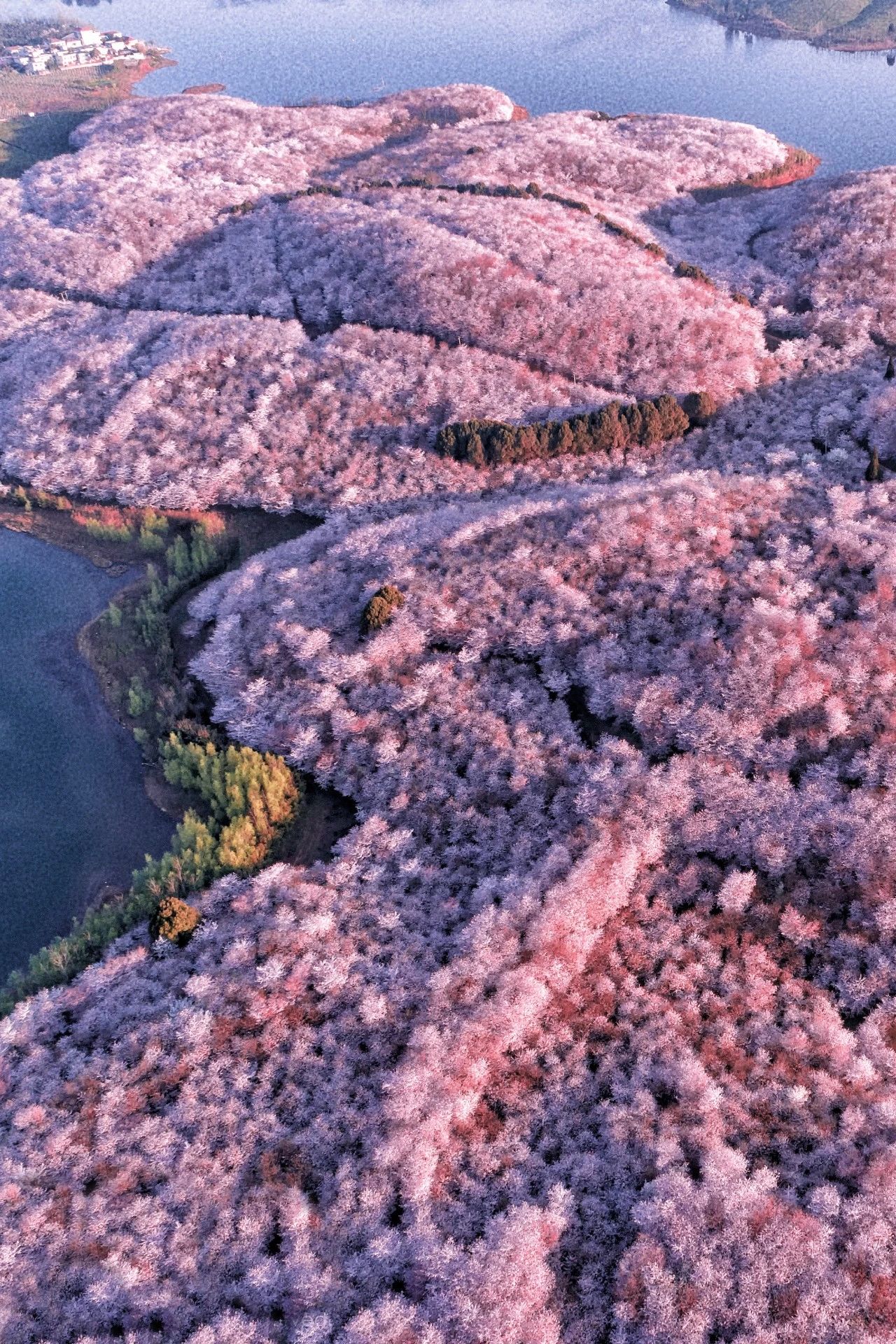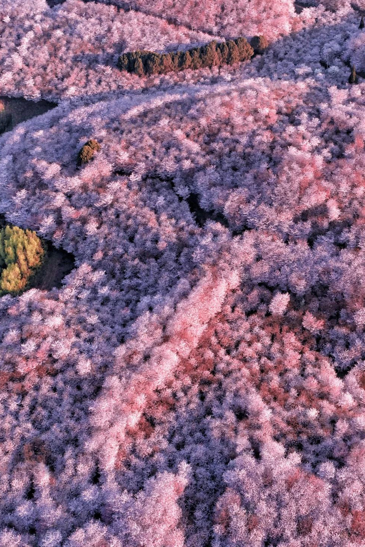 在广西南宁,樱花装点了森林公园的绿装;在云南的圆通山、樱花山谷,樱花下起一场粉色的雪;在天府之国四川,每逢春天,人们就从城市里跑到各种“樱桃沟”,欣赏米米大的樱桃花……