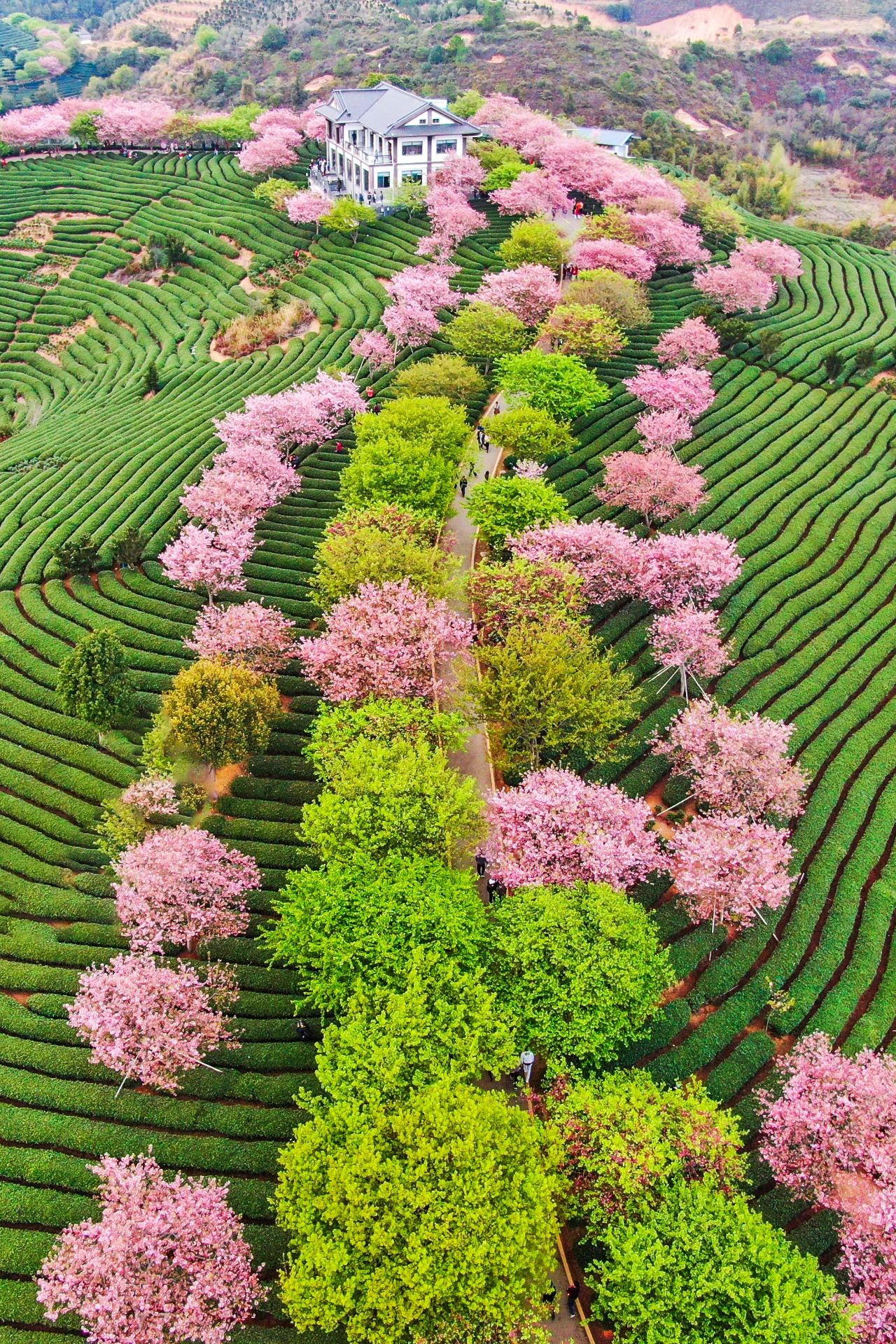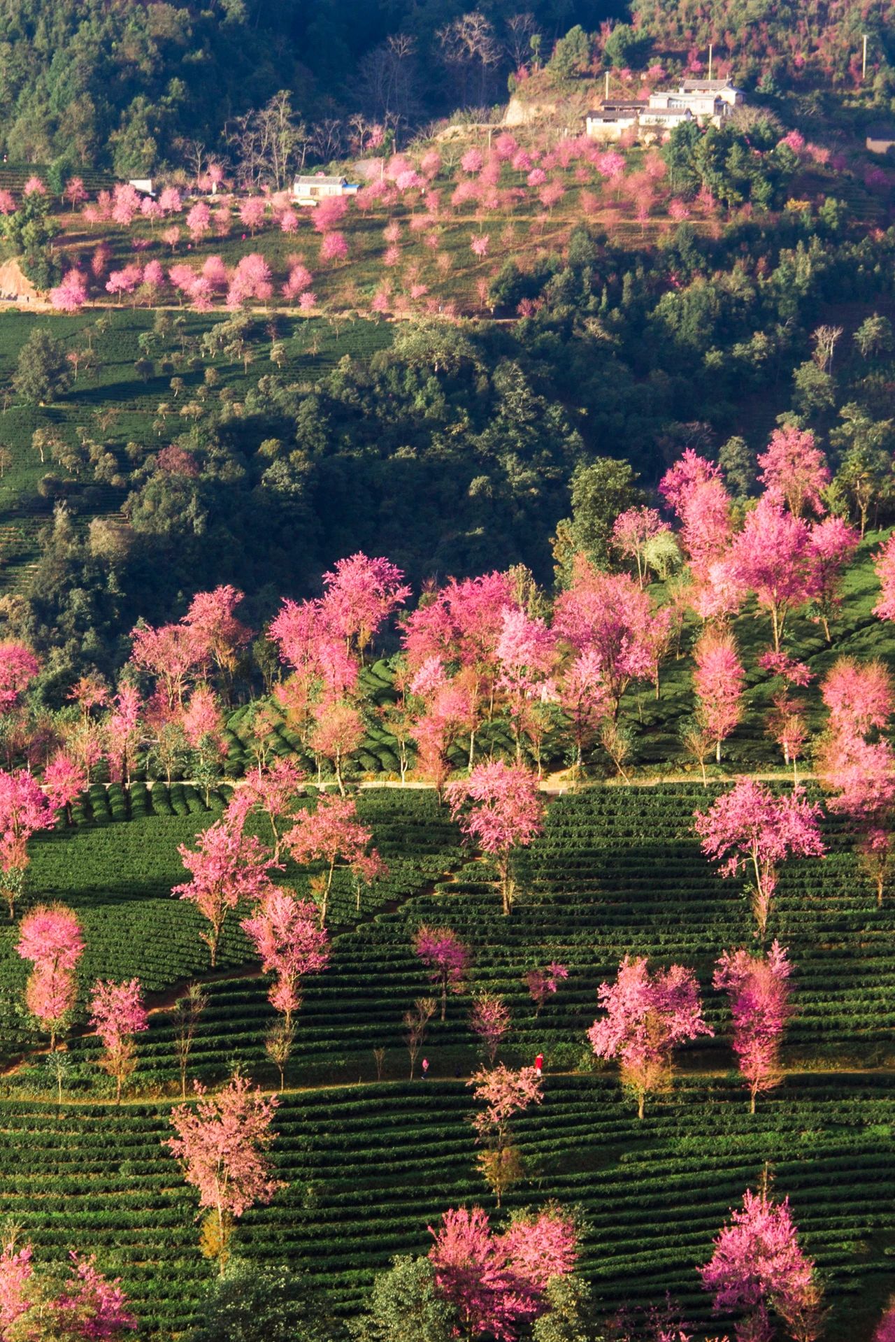 樱花来到中国,还与山间茶区产生了奇妙的反应。