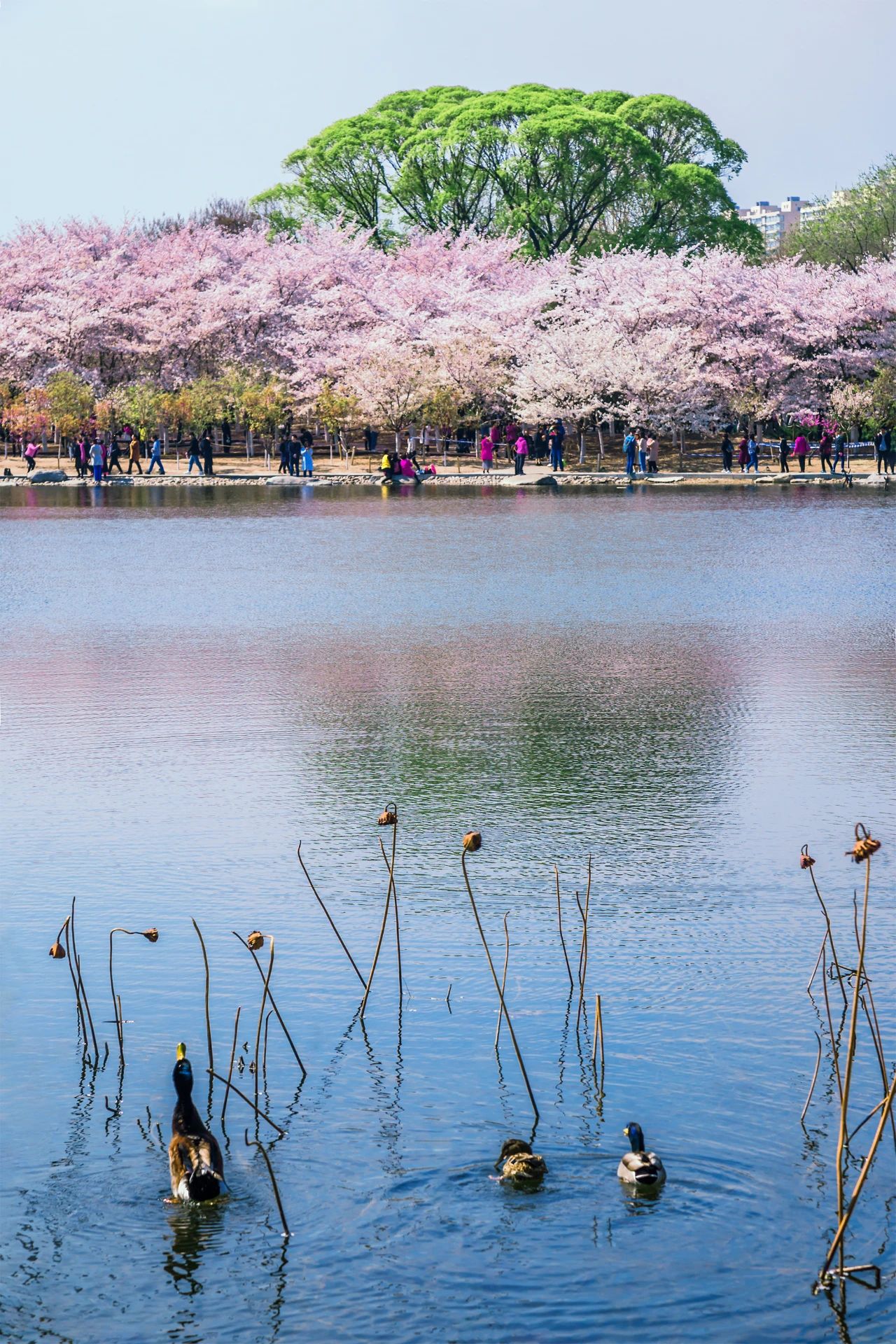 只要气候适宜,中国人总会想着在大型公园里栽一点烂漫的樱花,她们,热烈了每一座城市的春天。