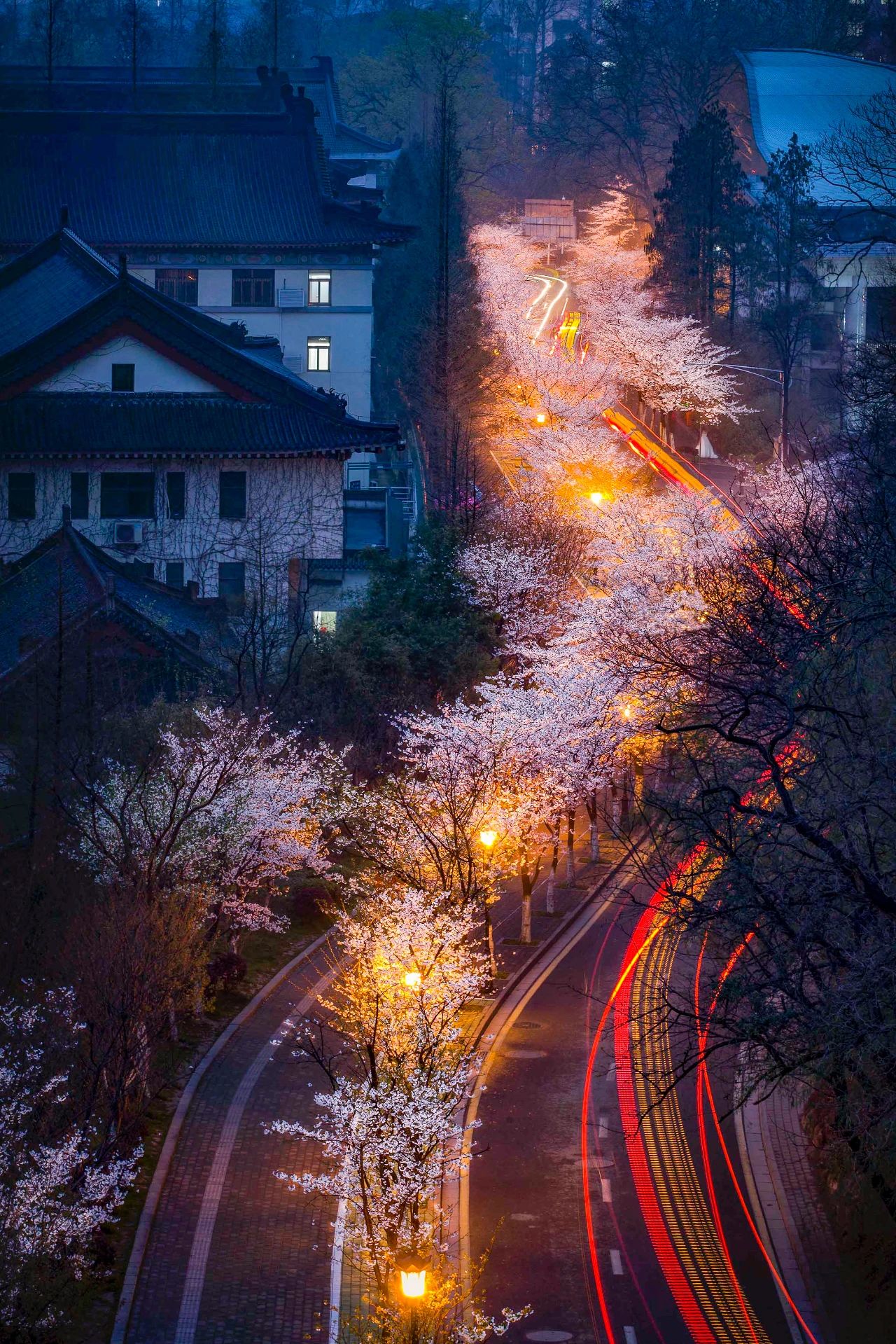 南京鸡鸣寺路,夜樱如长河。| 刘成贺