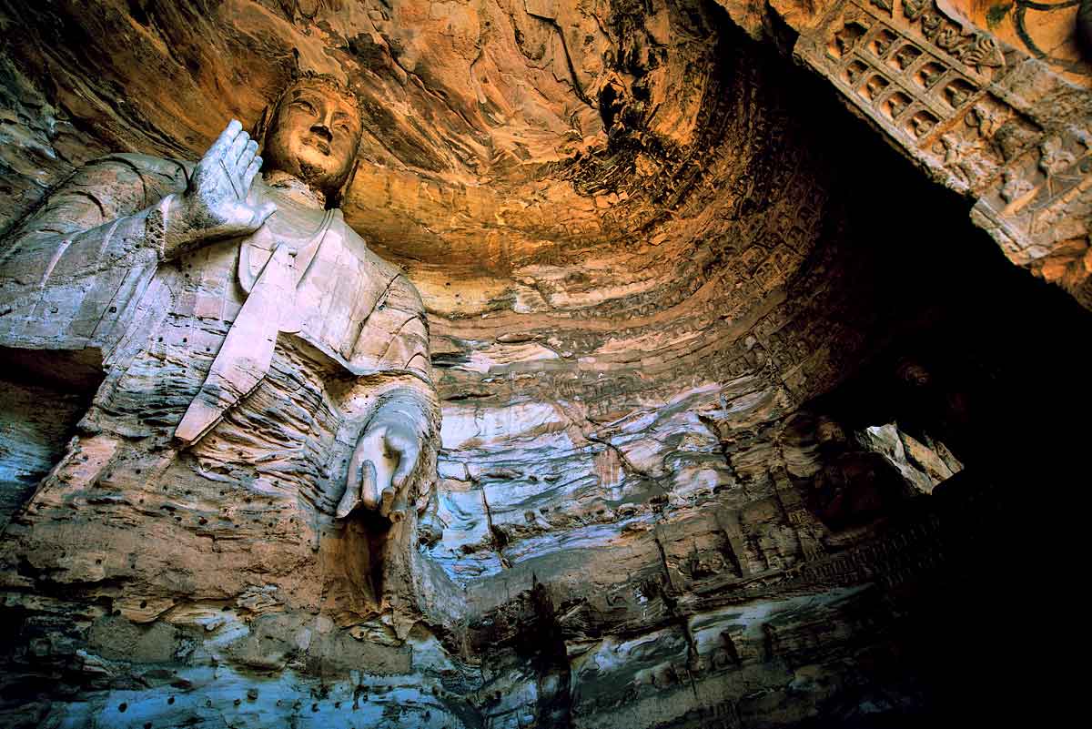 云冈石窟位于中国山西省大同市西郊的武周山南麓,是中国著名的石窟群之一。云冈石窟始建于北魏时期,它不仅是中国佛教艺术的宝库,也是世界文化遗产的重要组成部分,每年吸引着大量的游客和学者前来参观研究。和后期开凿的洛阳龙门石窟不同的是,云冈石窟不仅有中国传统艺术风格,也融合了古印度、西域和中原各民族的艺术特征。