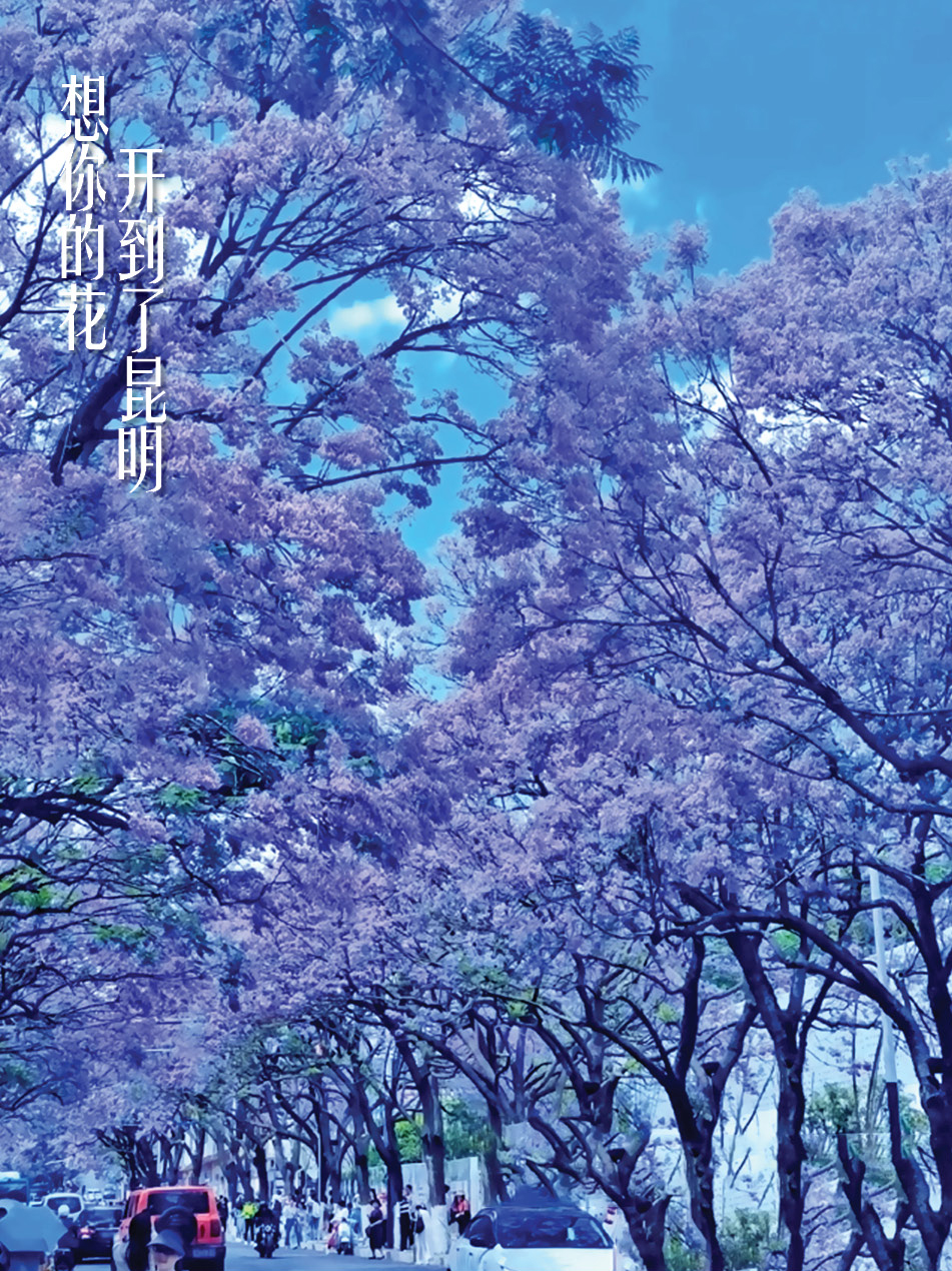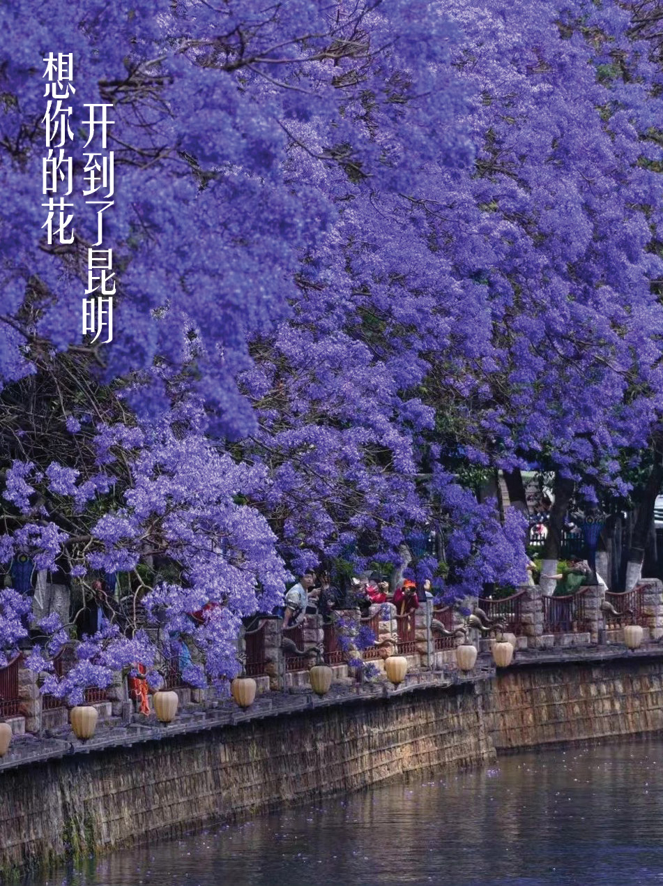 昆明是一座不缺花的城市,这里永远花香四溢。二月梅花,三月樱花,四月蓝花楹盛开,昆明的街头巷尾,都被那一抹浪漫的紫色覆盖。