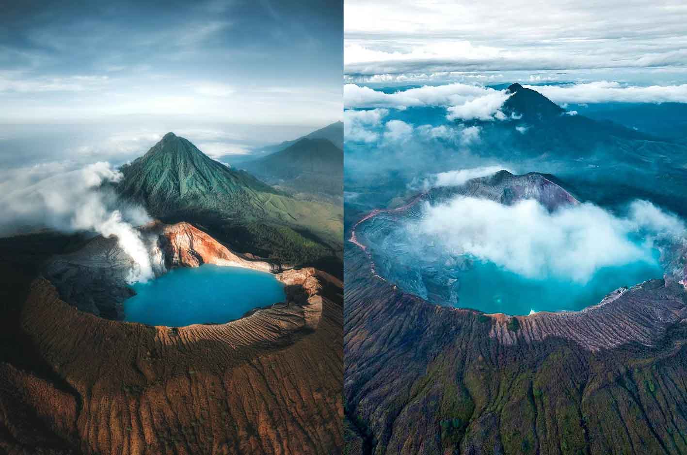 伊真火山有两个地球上罕见的现象:第一种是活性溶胶,可以释放出炽热易燃的含硫气体。当这些气体在温度超过360摄氏度时接触空气,就会燃烧。一些气体在大气中冷凝,产生熔融硫磺流,同时也会燃烧,形成梦幻的蓝色火焰。然而,天亮之后,火焰逐渐难以辨别。