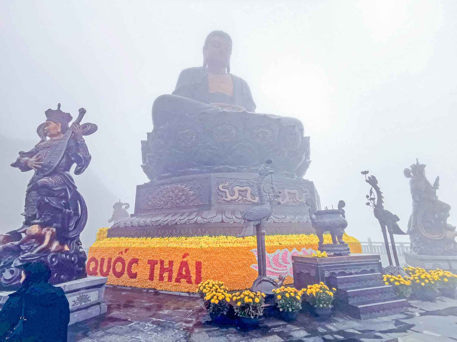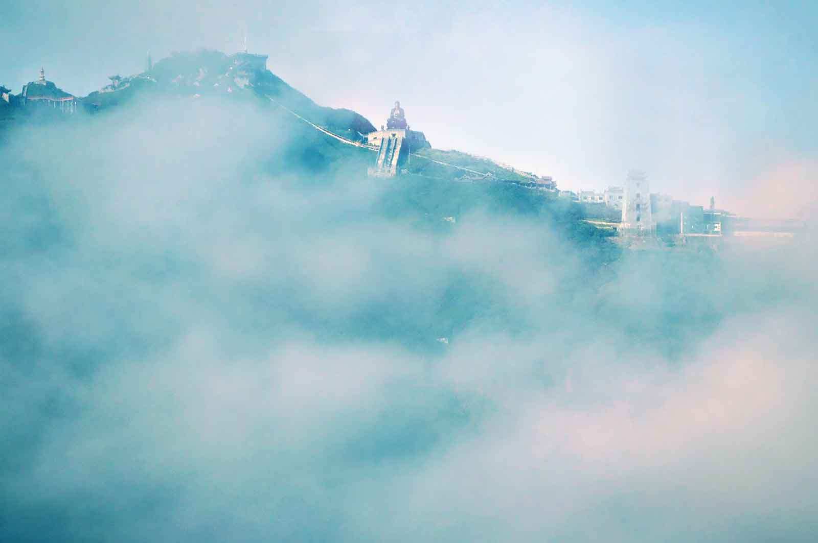 经过20分钟滑翔后,到达了番西邦峰第一站——跟随着梯级一步一步的来到了灵山的佛教建筑群“金山宝胜寺”,这里海拔3057米高,再往上登爬就看到庄严耸立着的“亞洲座落在最高处的阿弥陀佛铜像”,堪称传奇中的传奇。