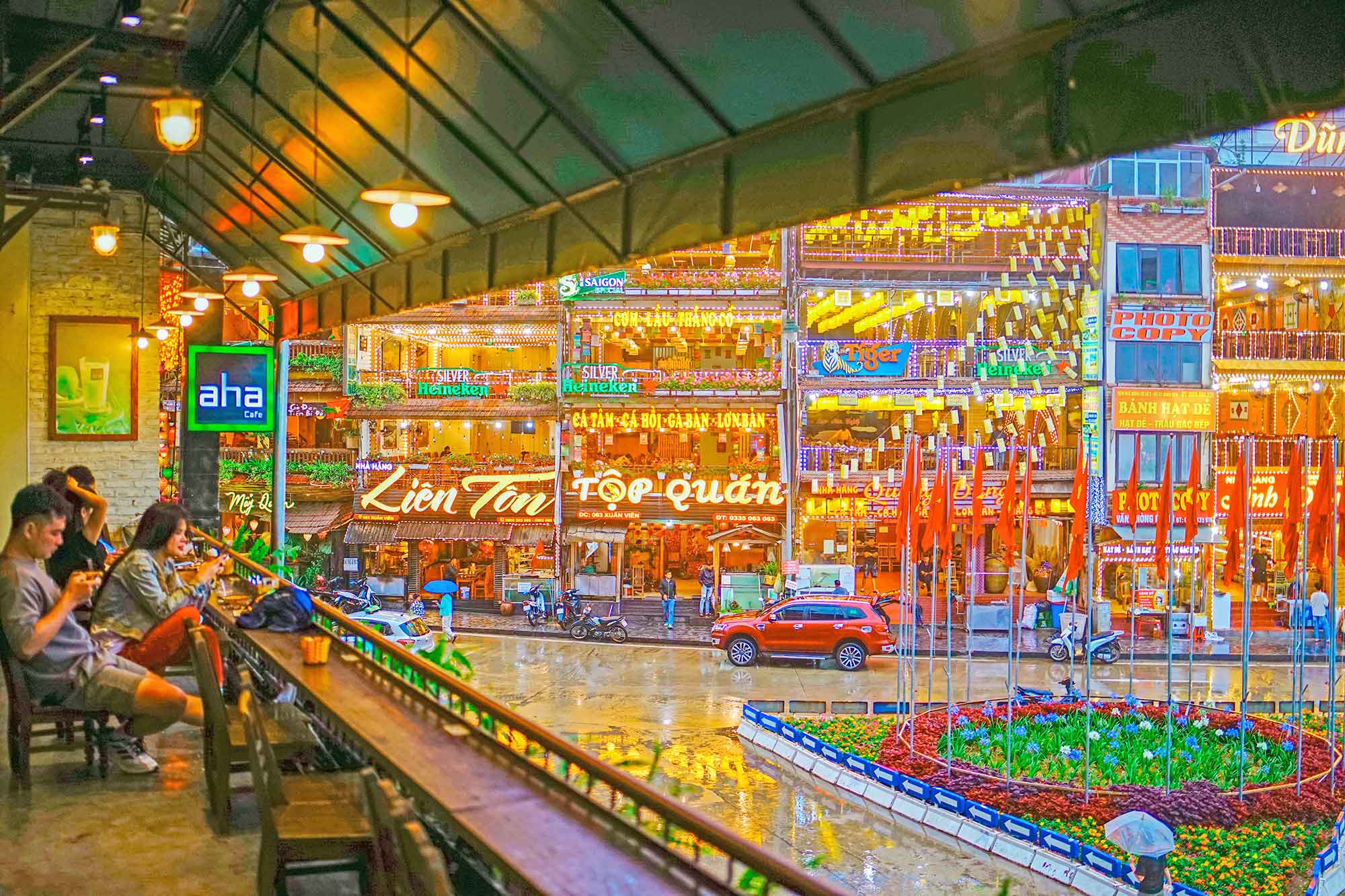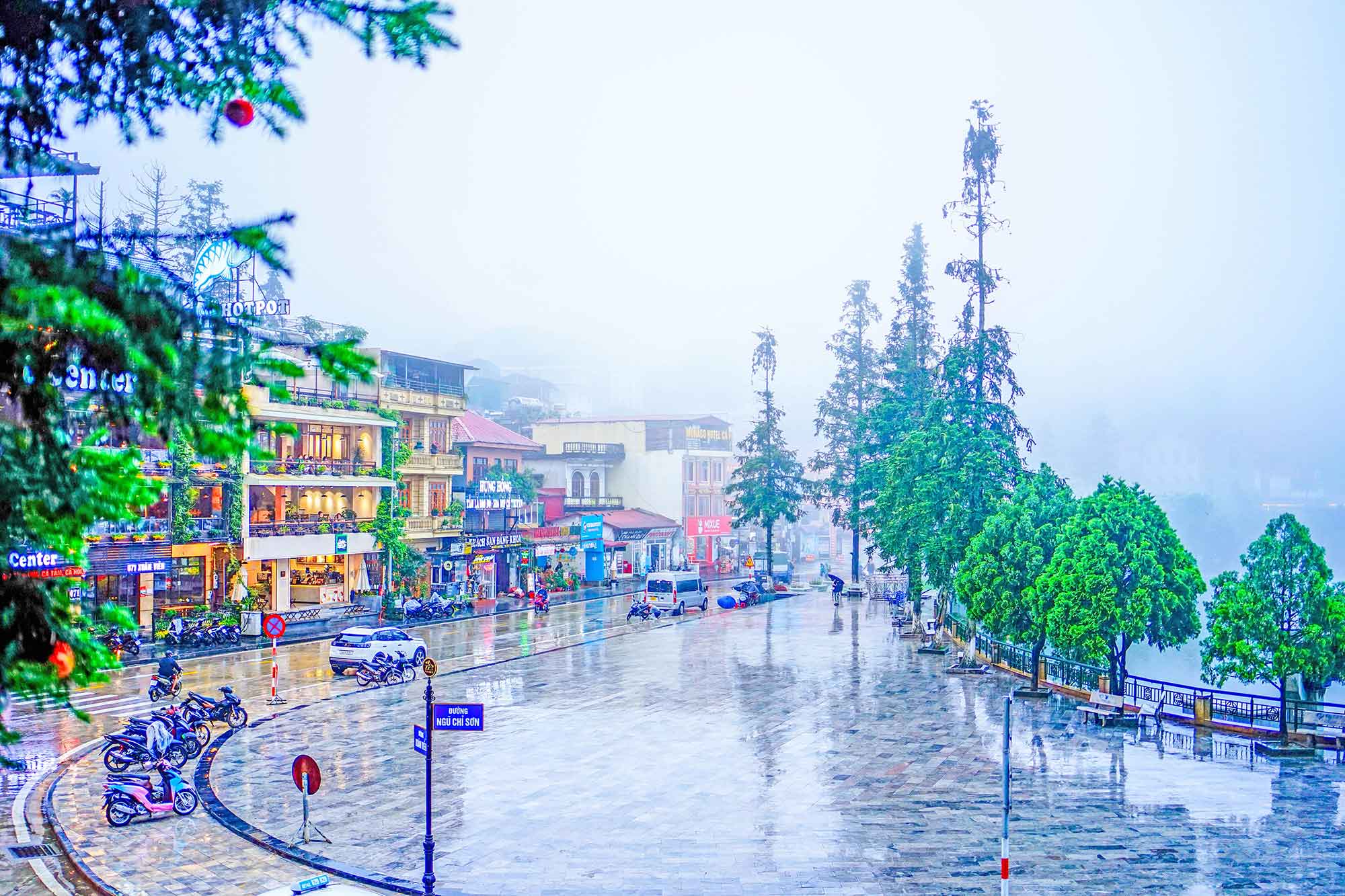 上番西邦的登山列车近年也成了许多人争相拍照的网红“景点”之一,因为这辆复古风格的红色小火车,重现了法属印度支那时代的优雅,很像电影哈利波特的梦幻场景;列车在雨雾中缓缓行驶,本来15分钟的车程,会穿越壮观的山谷,欣赏错落有致的梯田风光与花海美景,而这一切却因为雨雾过浓而被遮掩了。