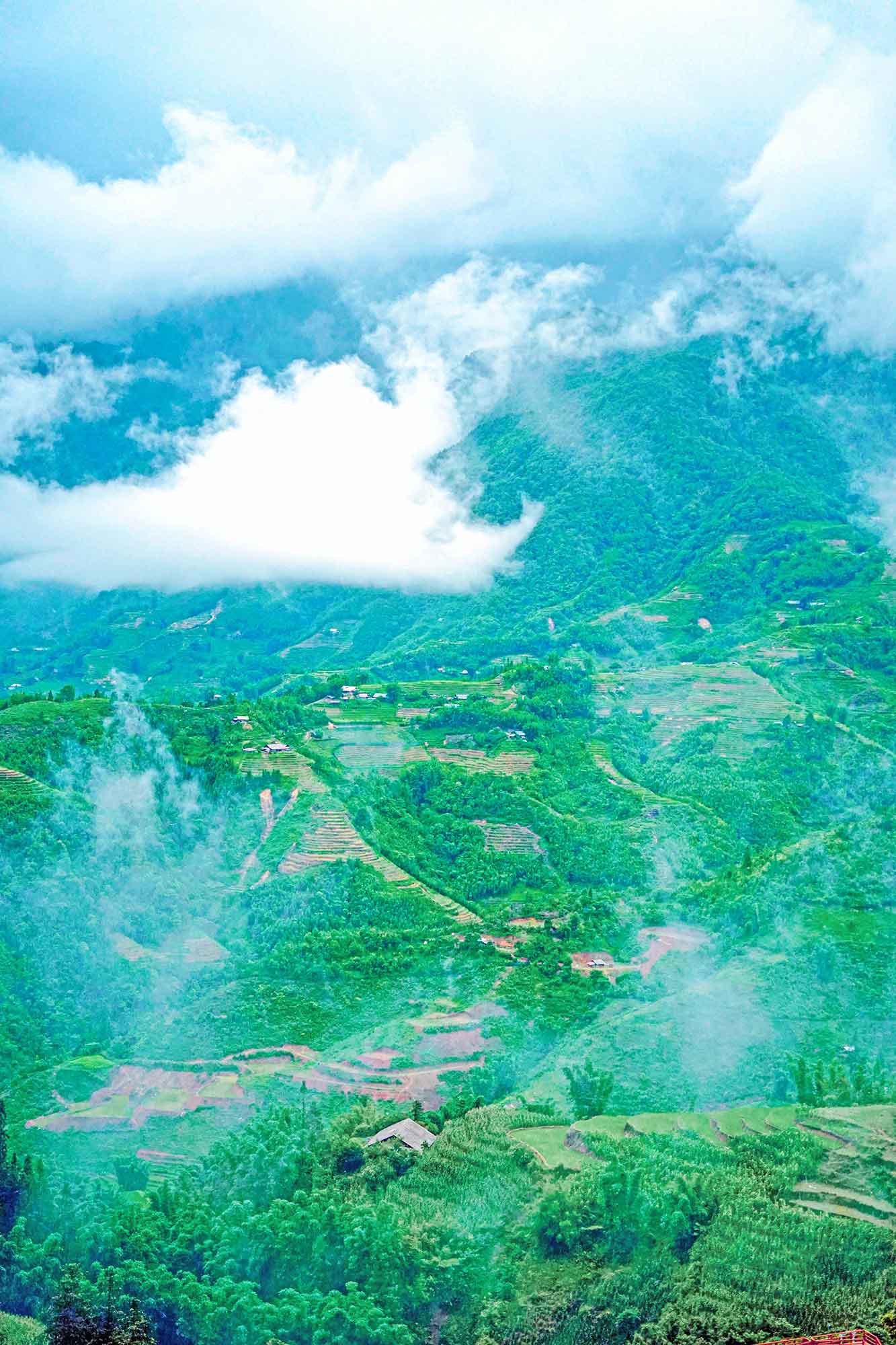 越南沙坝,山峦叠翠,梯田如画,云雾缭绕,宛如仙境。