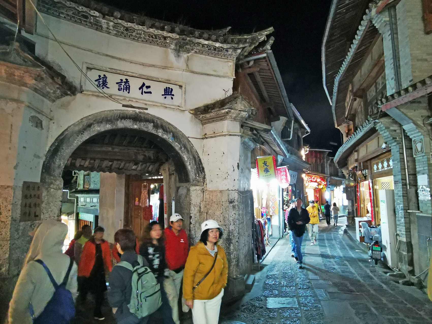 抵达和顺,已是日影西斜。古镇静卧在晚照里,如一位欲言又止的旧识。作为南方丝绸古道上的重镇,六百年的光阴在此沉淀为光滑的石板路、斑驳的粉墙和檐角沉默的飞翘。图书馆里泛黄的典籍,洗衣亭畔潺潺的溪水,都在诉说着“文脉”二字的重量。可惜我们来得太迟,只能与它共度一个灯火阑珊的夜。