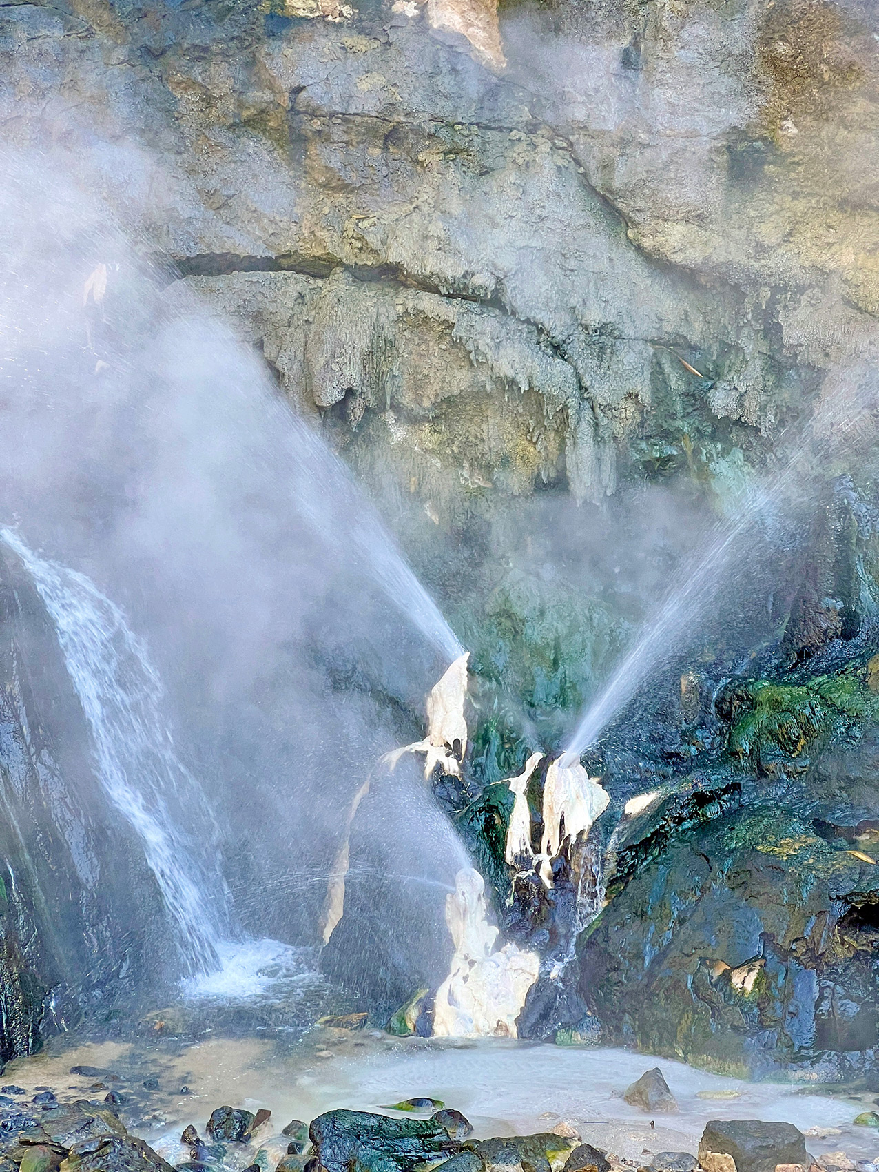 沿着雾气氤氲的栈道前行,热气将视野染得朦胧,鼓鸣泉如战擂,珍珠泉似玉碎,蛤蟆嘴不住嘶鸣。