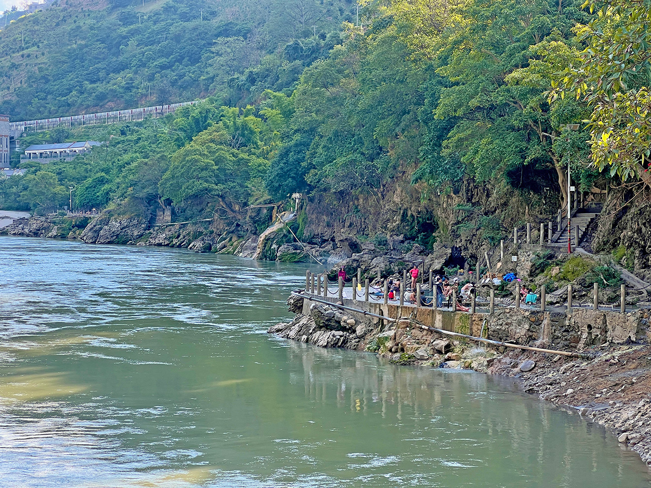 落地后,沿小径下行至江畔,便是登埂“澡塘会”。大小十八处泉眼自岩隙涌出,水温宜人,白雾袅袅。数百年来,傈僳族人每逢春节便汇聚于此,沐浴、对歌、举行“上刀山”的仪式,相信这天地馈赠的温泉能涤荡疾病,迎来安康。最大的池中,几位当地妇女正坦然沐浴,欢声笑语与水汽一同蒸腾。那份与自然全然相融的豁达与惬意,深深触动了旁观的我。这不仅是身体的洗涤,更是一场与传统文化和自然哲学的精神对话。