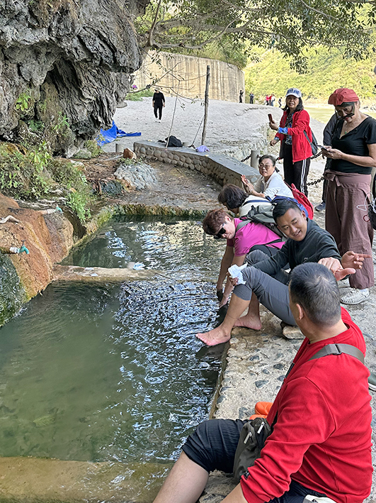 登埂澡塘会:天然温泉免费开放,水温50-72℃,可泡脚放松。